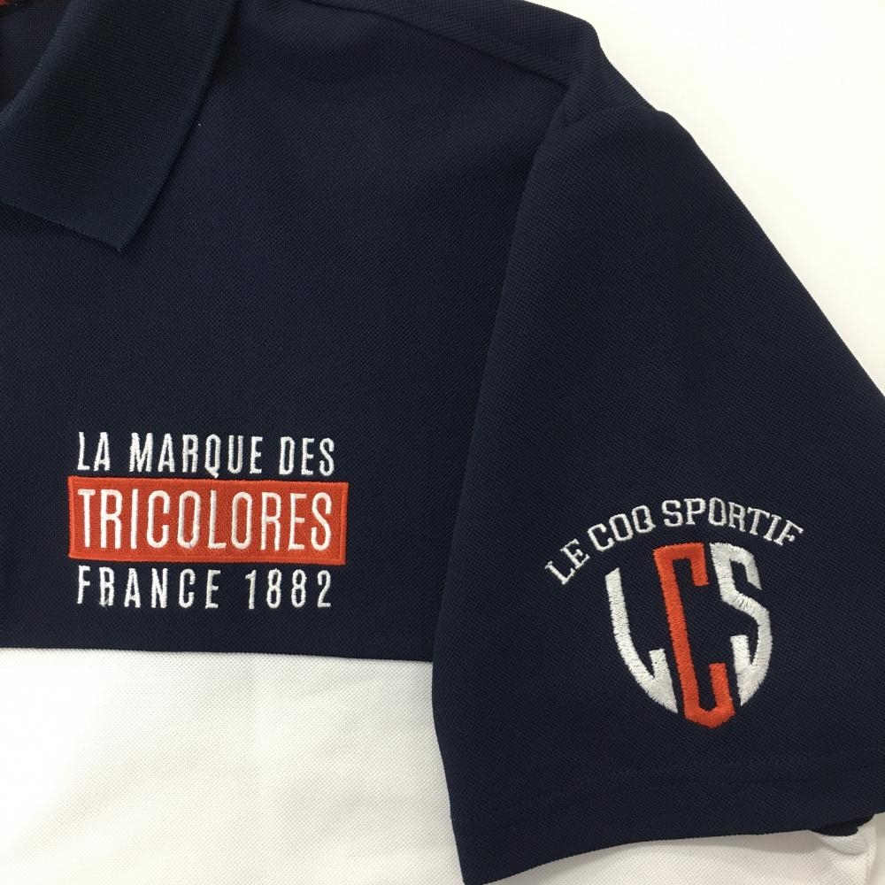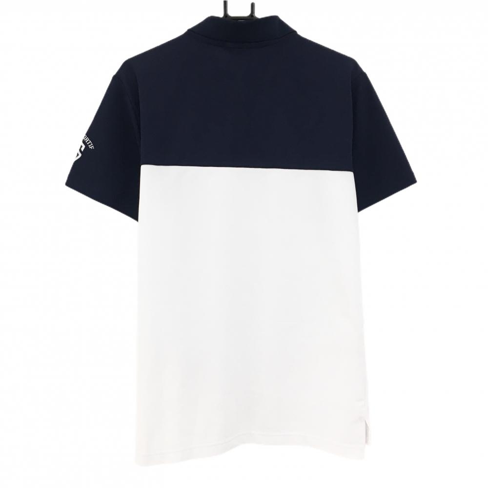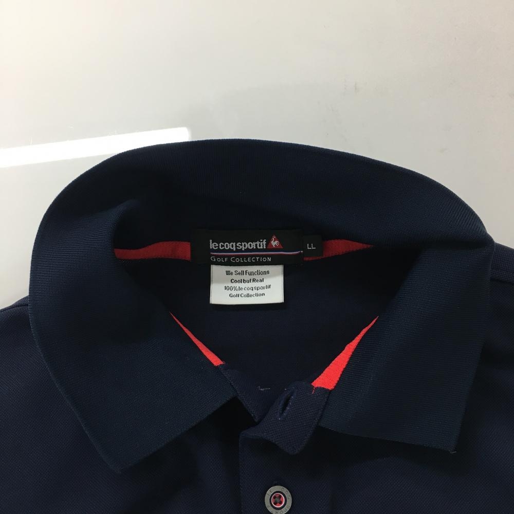 【美品】ルコックゴルフ 半袖ポロシャツ 白×ネイビー バイカラー ロゴ刺しゅう メンズ LL ゴルフウェア le coq sportif