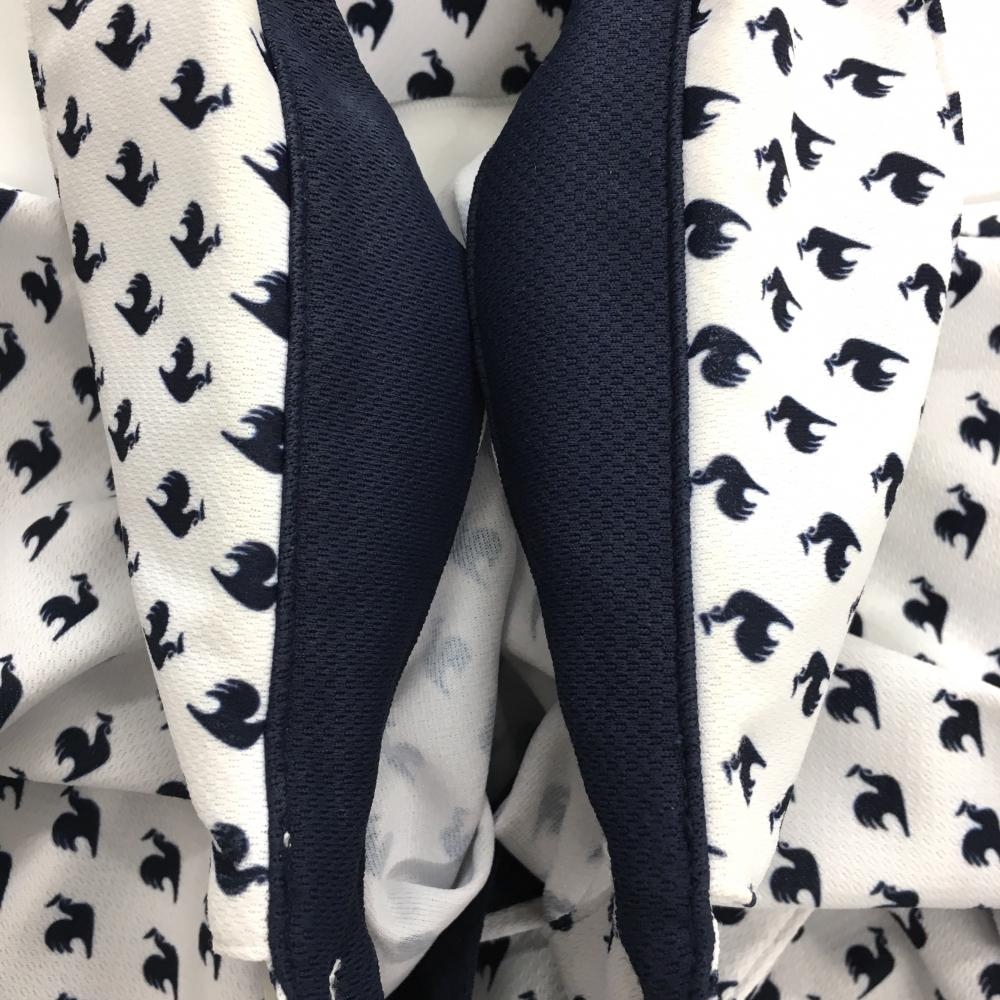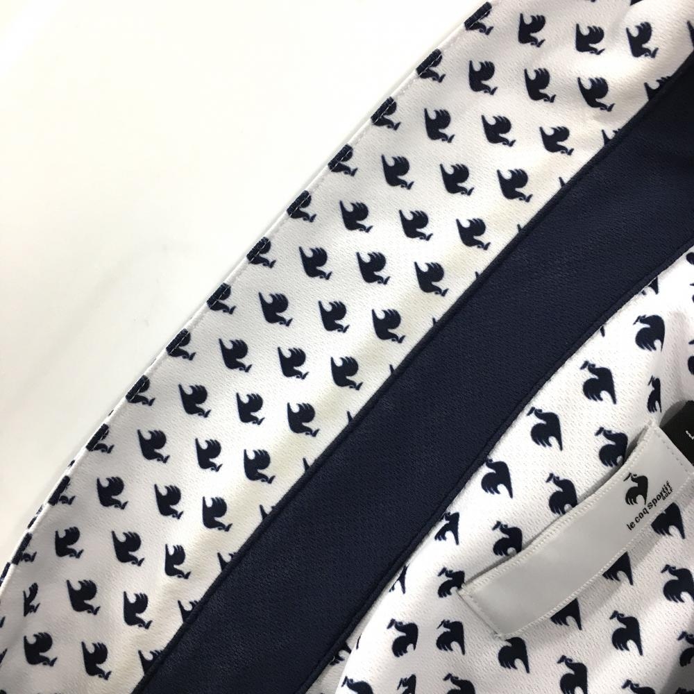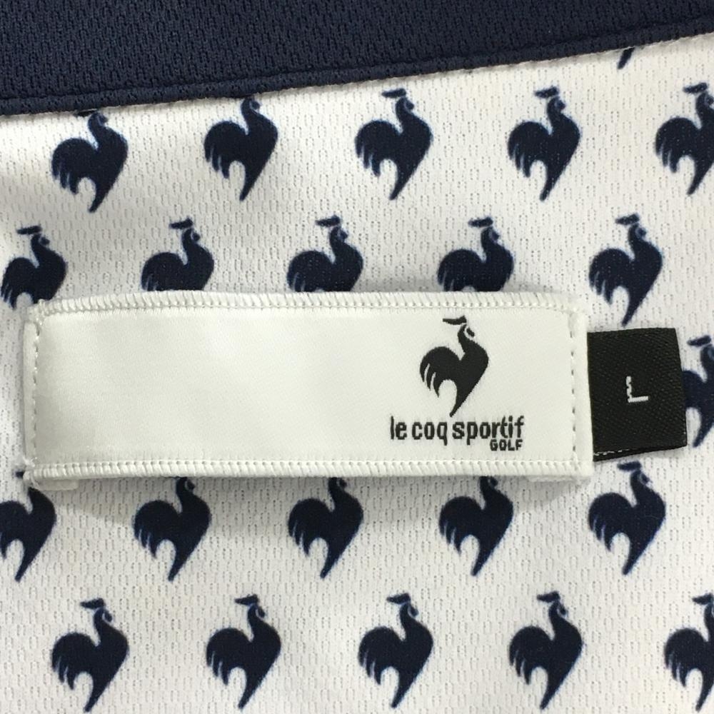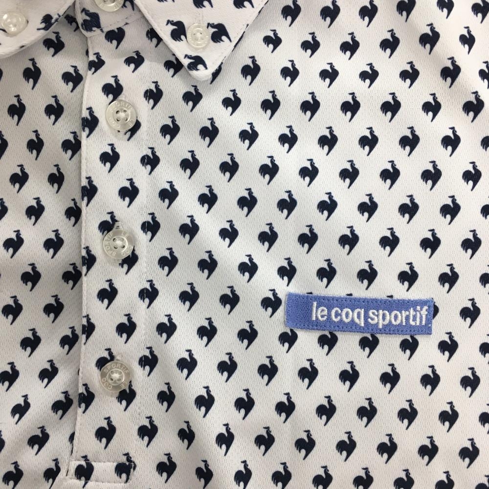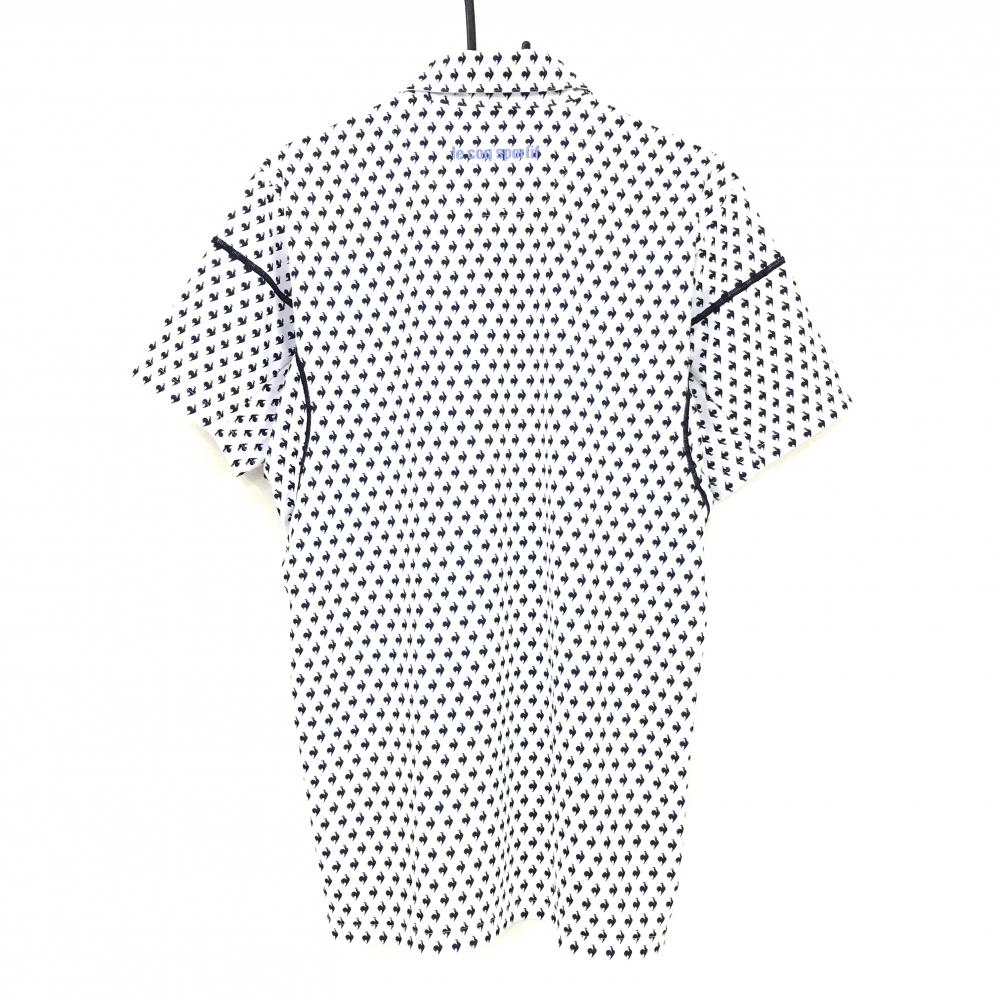 ルコックゴルフ 半袖ポロシャツ 白×ネイビー ロゴ総柄 ボタンダウン メンズ L ゴルフウェア le coq sportif