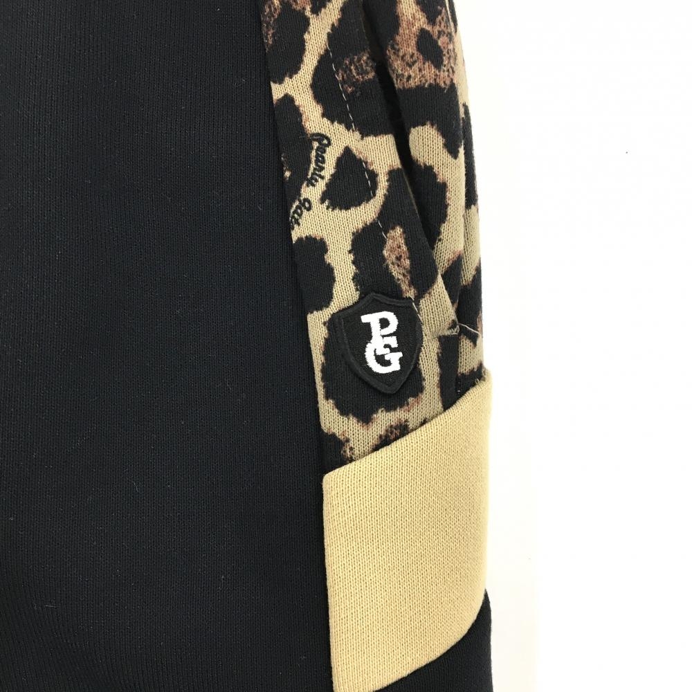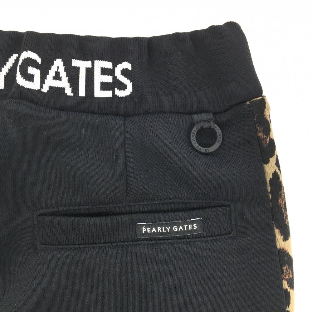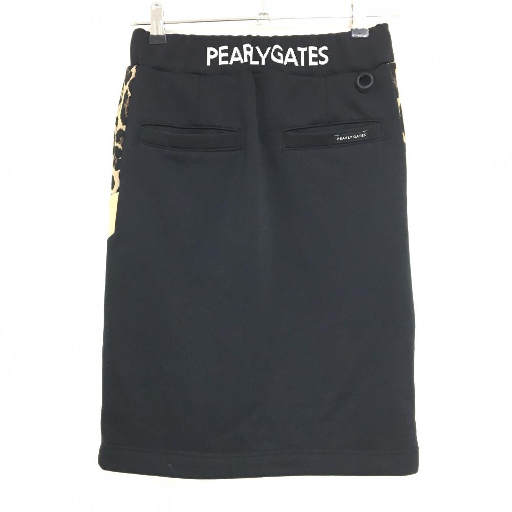 【超美品】パーリーゲイツ スカート 黒×ベージュ サイド一部レオパード柄 スウェット レディース 0(S) ゴルフウェア PEARLY GATES