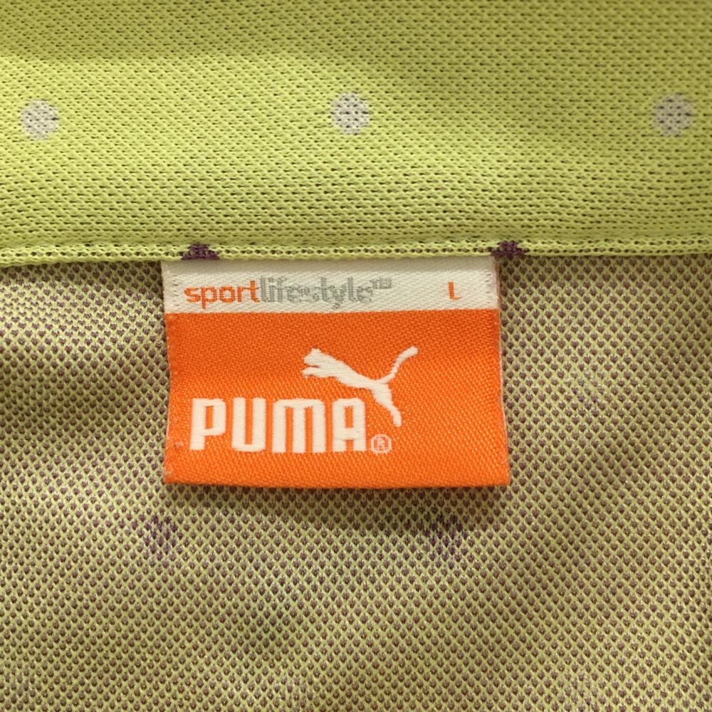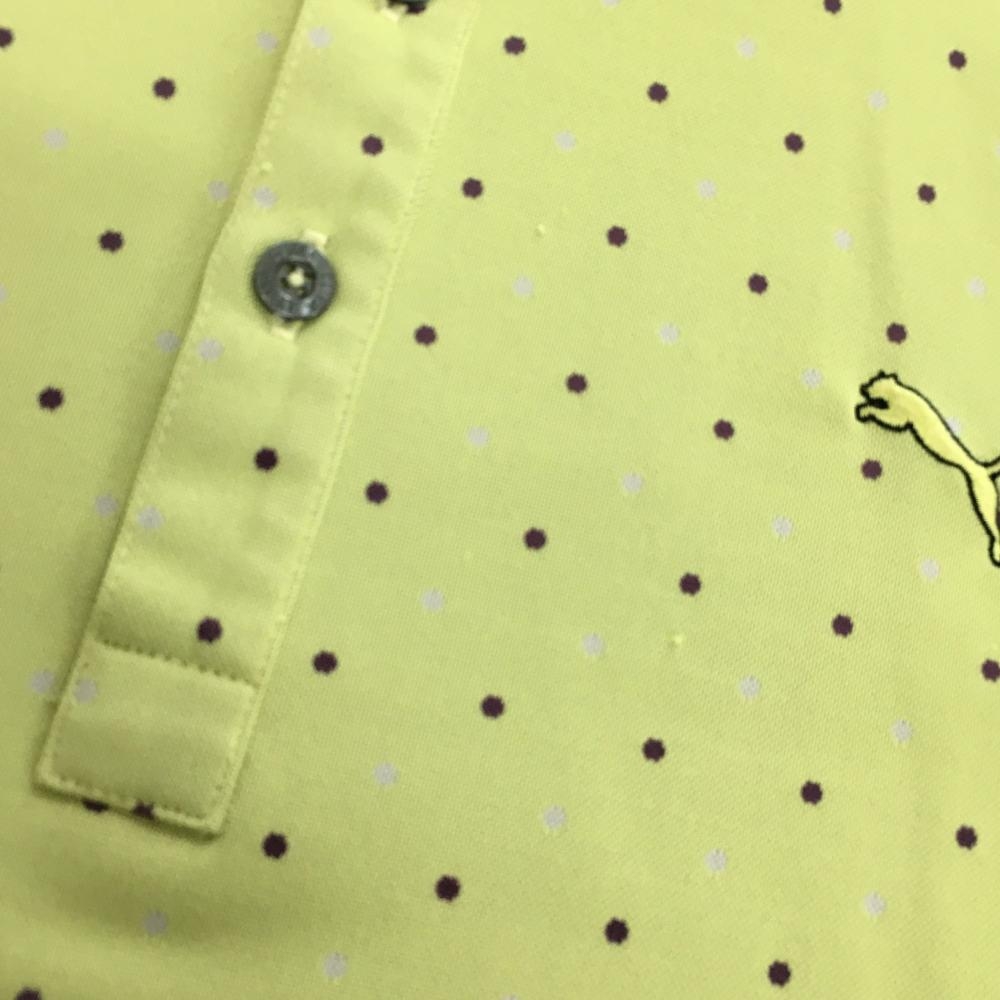 プーマ 半袖ポロシャツ イエロー系×パープル ドット ボタンダウン メンズ L ゴルフウェア PUMA