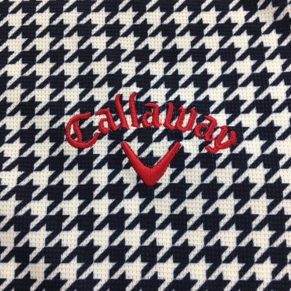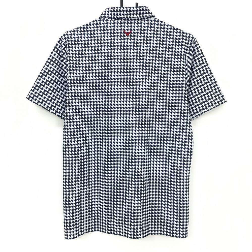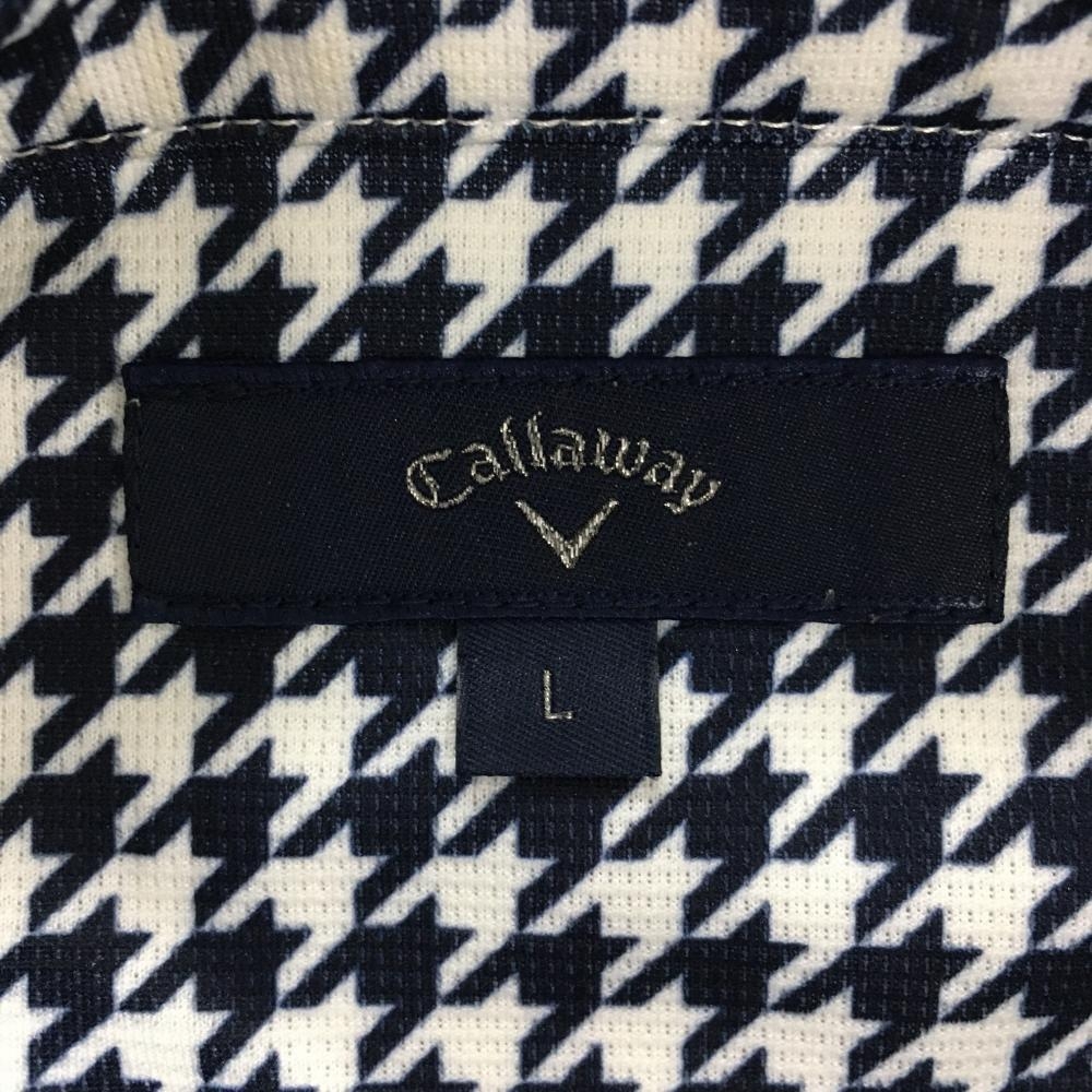 【美品】キャロウェイ 半袖ポロシャツ 白×ネイビー 千鳥格子柄 ボタンダウン メンズ L ゴルフウェア Callaway