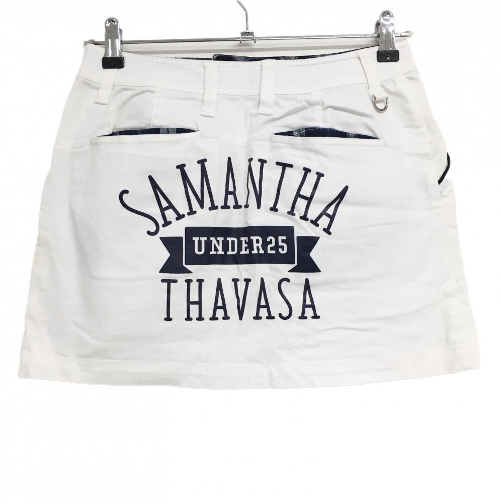 サマンサタバサUNDER25 スカート 白×ネイビー バックプリント レディース M ゴルフウェア Samantha Thavasa