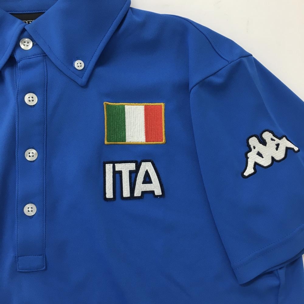 【美品】カッパ 半袖ポロシャツ ブルー ワッペン ボタンダウン メンズ M ゴルフウェア Kappa