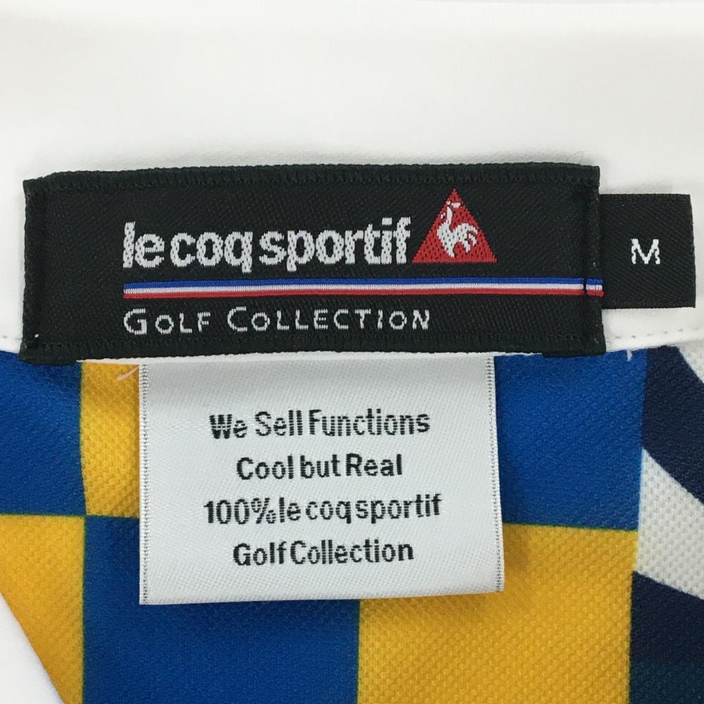 【超美品】ルコックゴルフ 半袖ポロシャツ 白×ネイビー プリント メンズ M ゴルフウェア le coq sportif