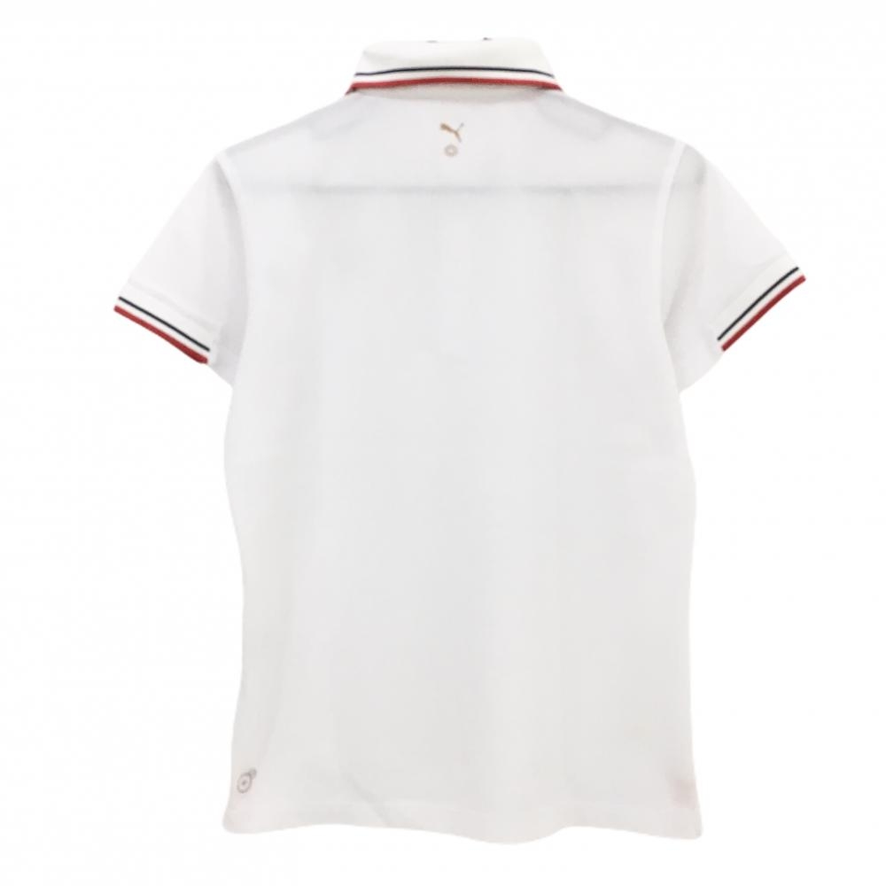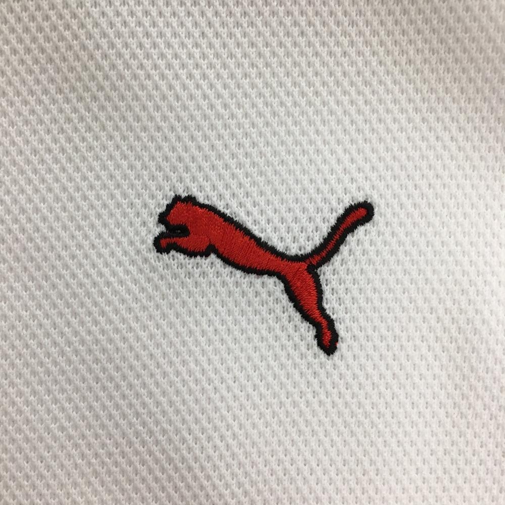 【美品】プーマ 半袖ポロシャツ 白×レッド 襟・袖口ライン DRYCELL ロゴレッド メンズ ゴルフウェア PUMA