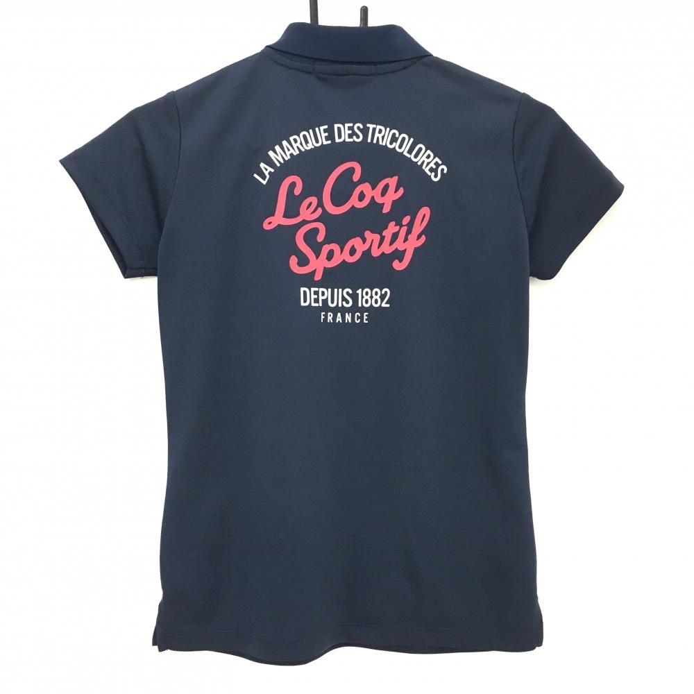 【超美品】ルコックゴルフ 半袖ポロシャツ ネイビー×白 フロントロゴ レディース S ゴルフウェア le coq sportif