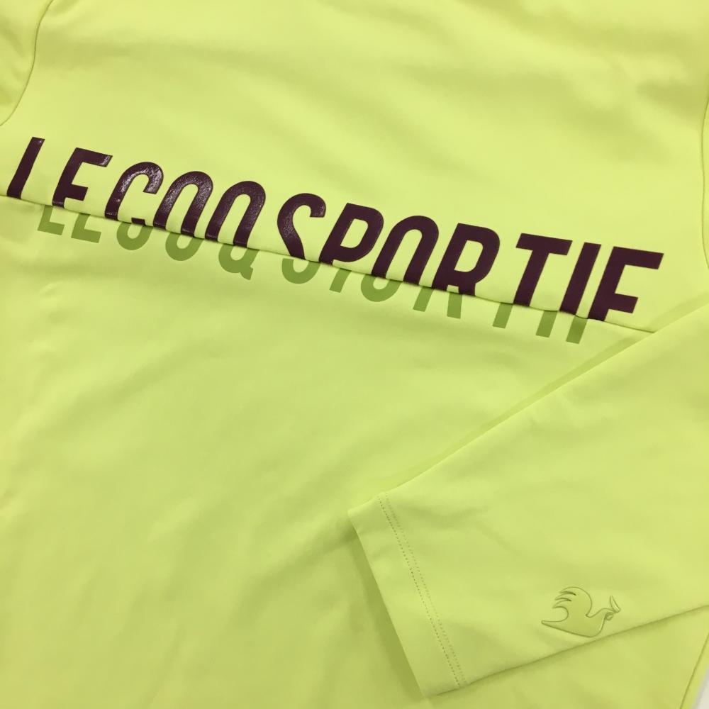 【美品】ルコックゴルフ 長袖ハイネックシャツ ライトグリーン×ボルドー系 フロントロゴ レディース M ゴルフウェア le coq sportif