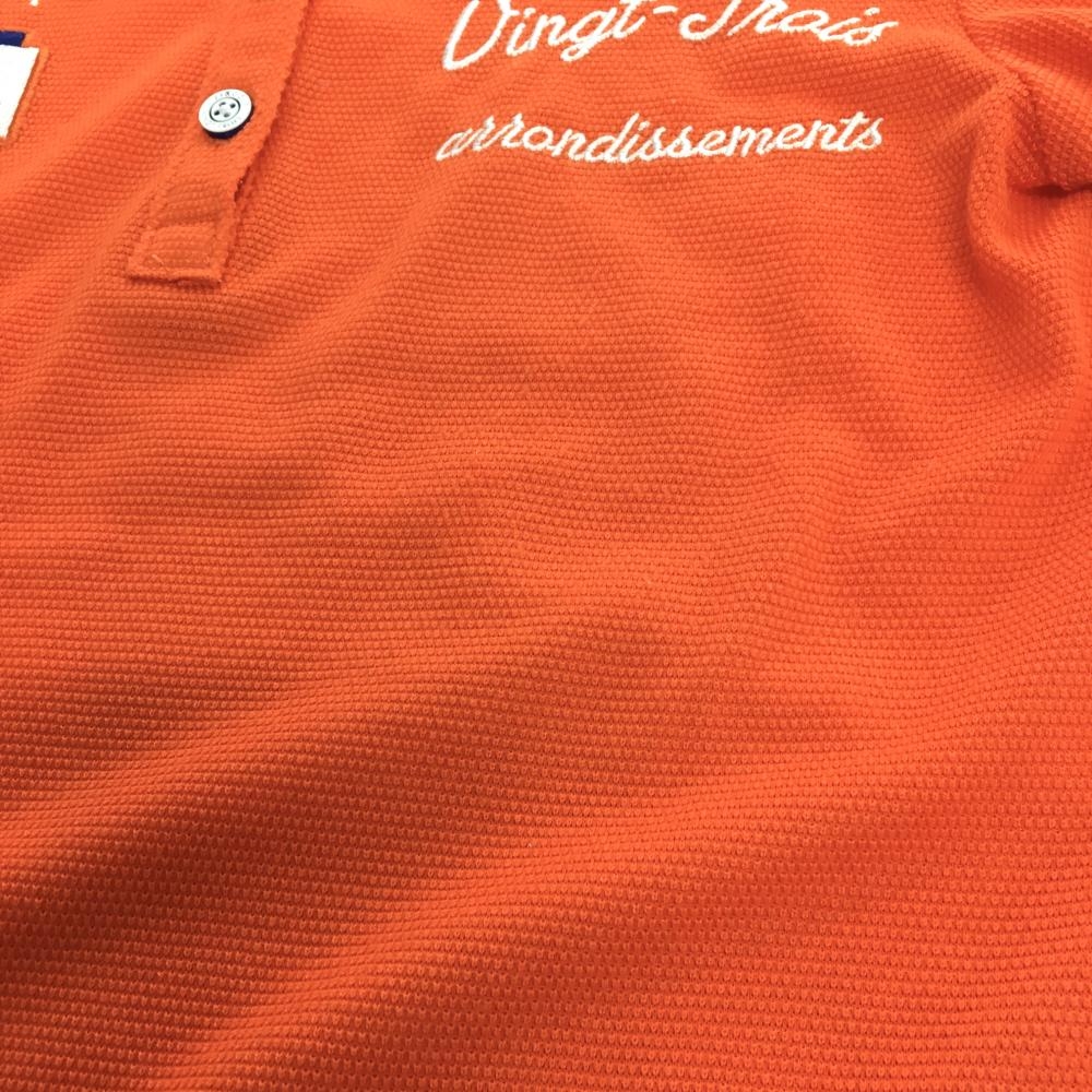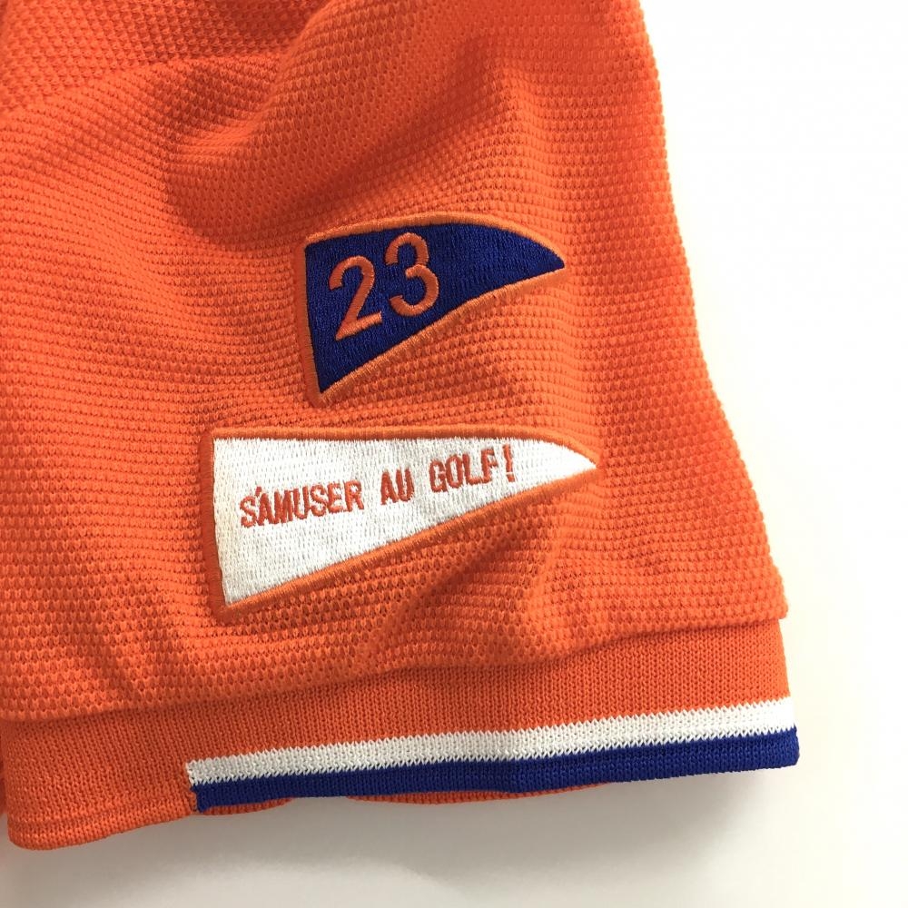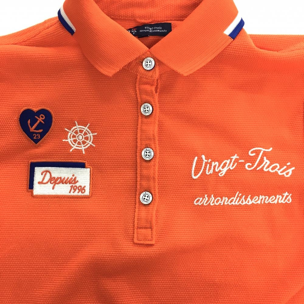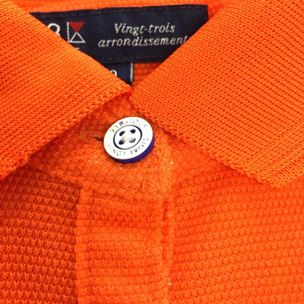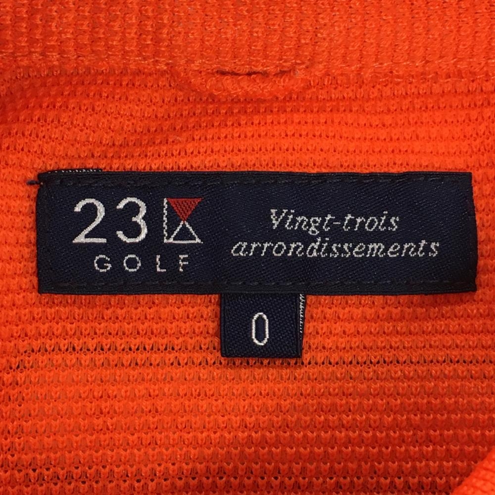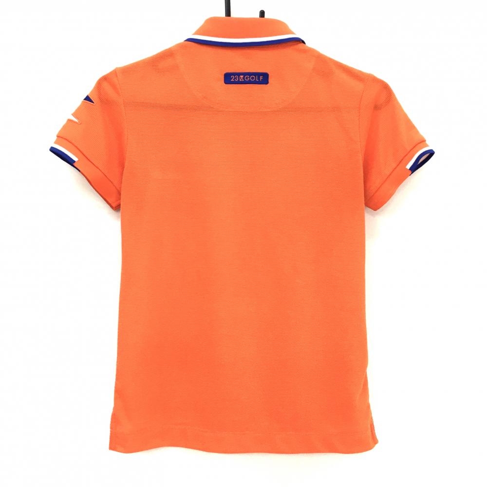【美品】23区ゴルフ 半袖ポロシャツ オレンジ×白×ネイビー ロゴ刺しゅう レディース 0(S) ゴルフウェア 23区