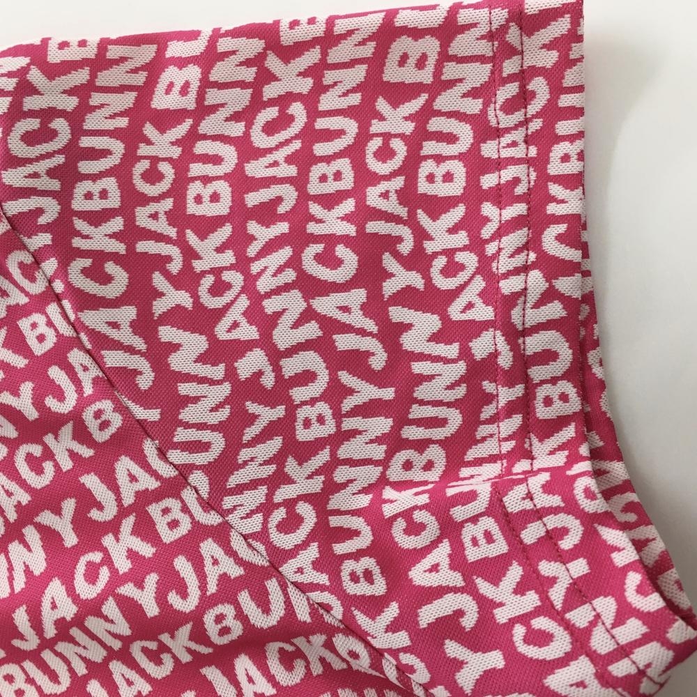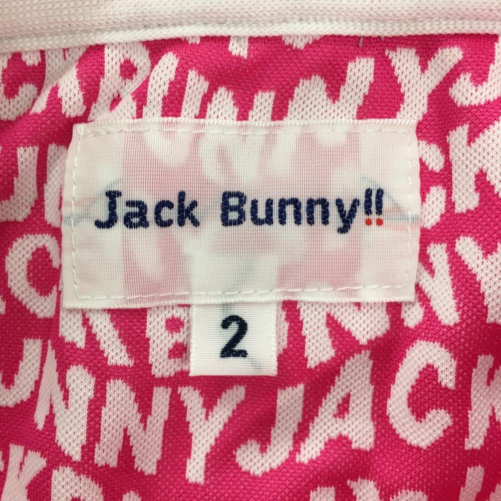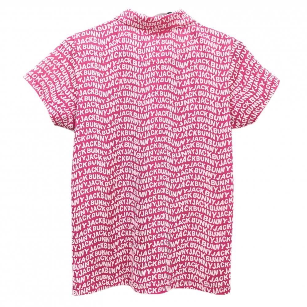 【超美品】ジャックバニー 半袖ポロシャツ ピンク×白 ロゴ総柄 レディース 2(L) ゴルフウェア Jack Bunny