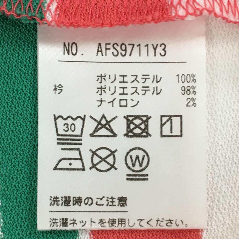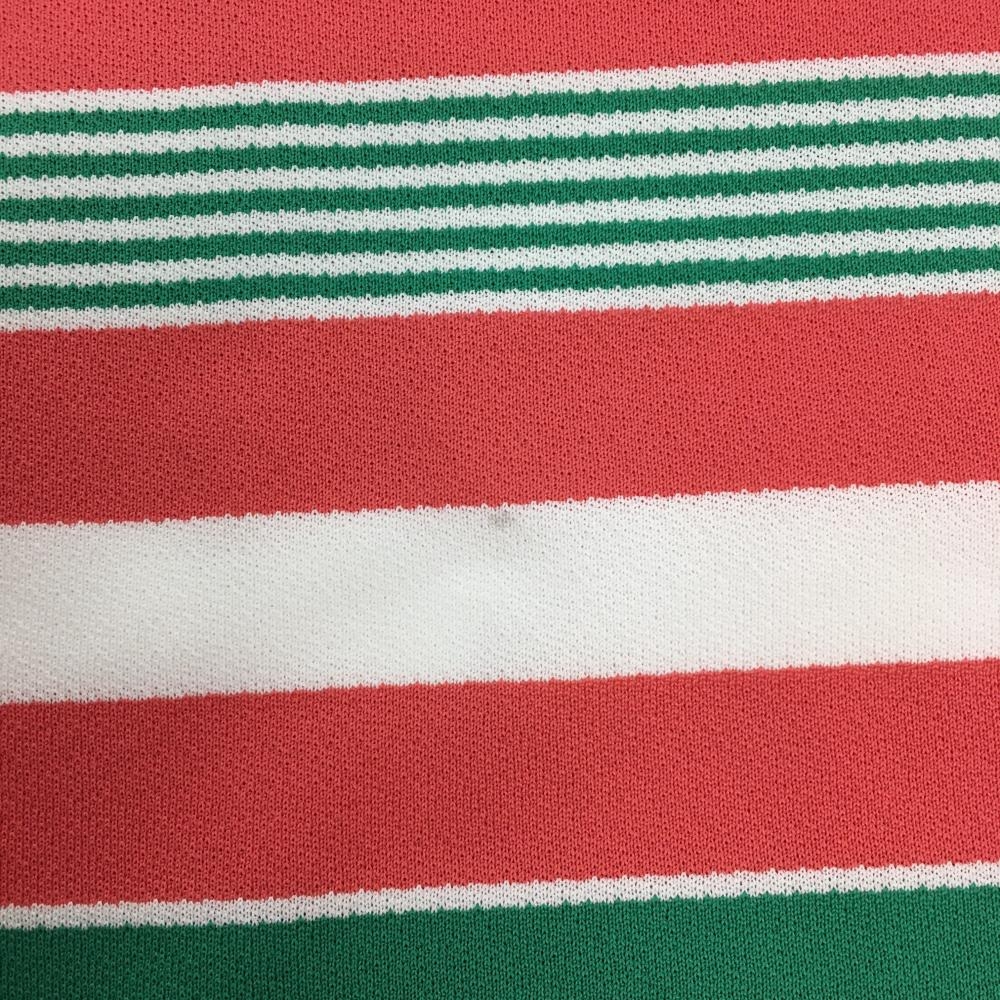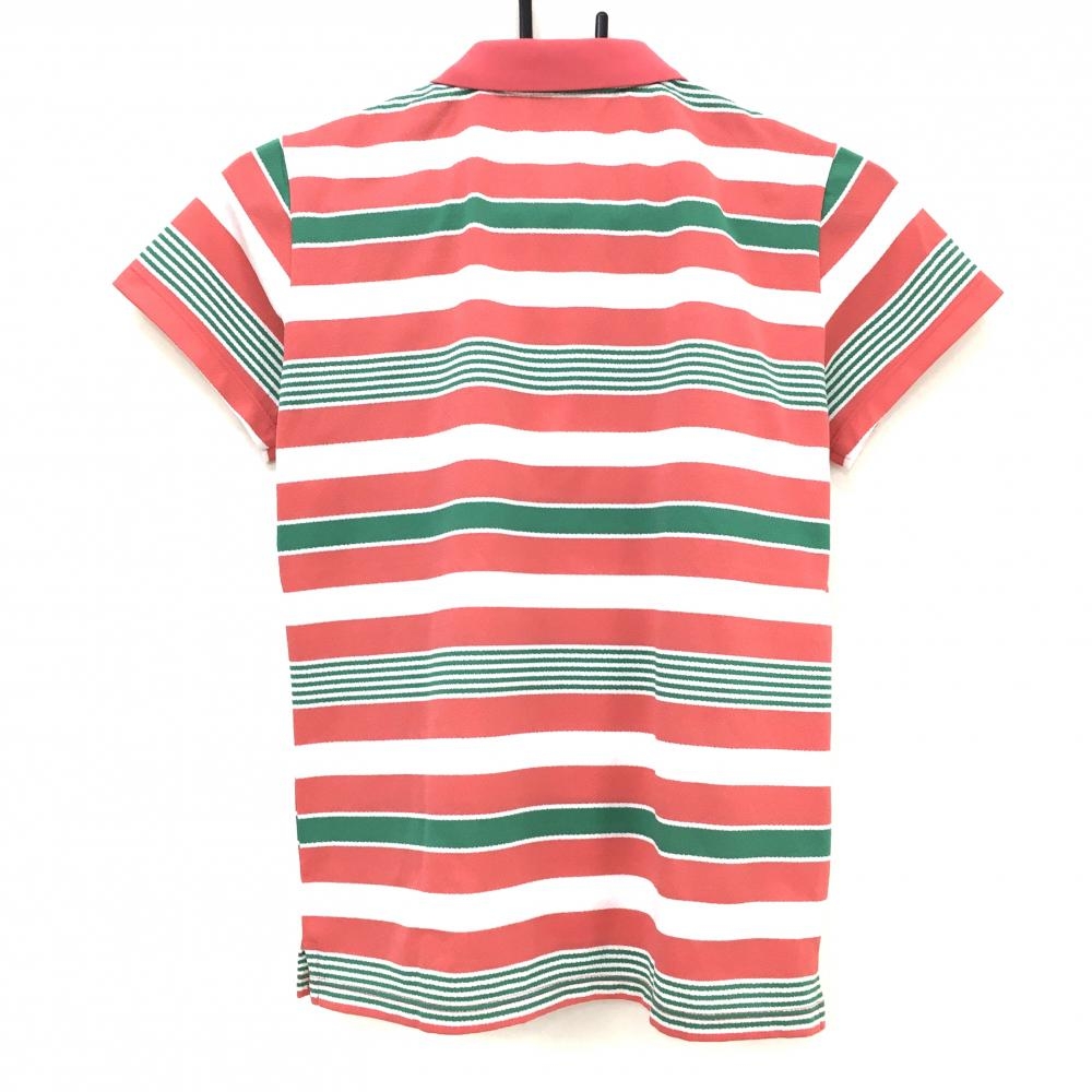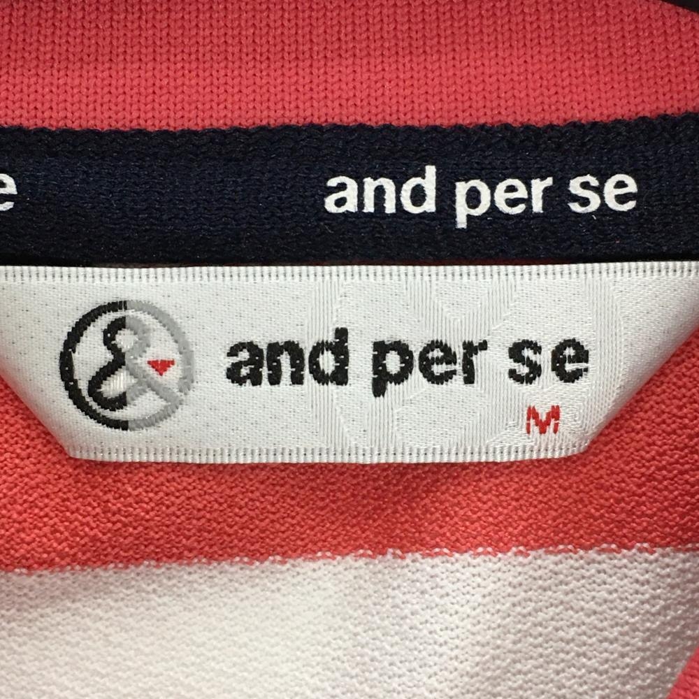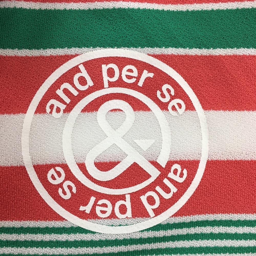【美品】アンパスィ 半袖ポロシャツ ライトピンク×白×グリーン ボーダー 胸ロゴ レディース M ゴルフウェア and per se
