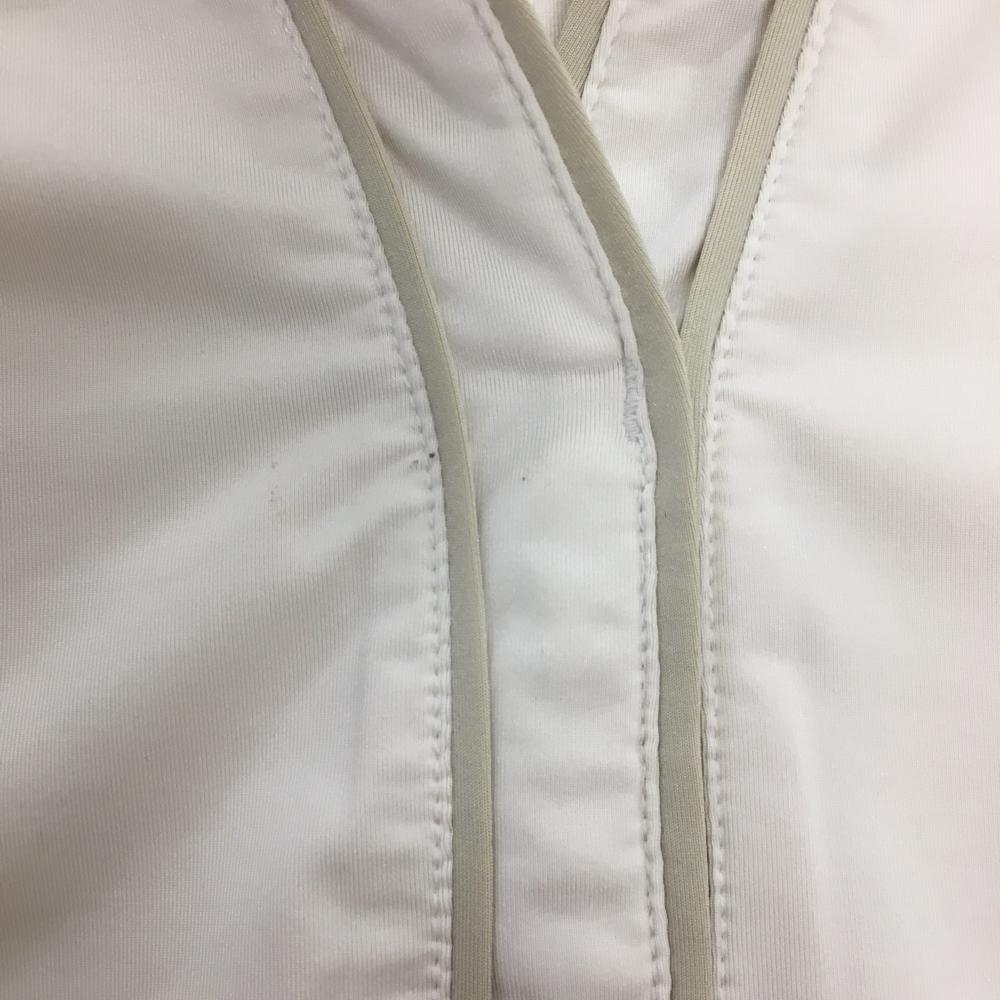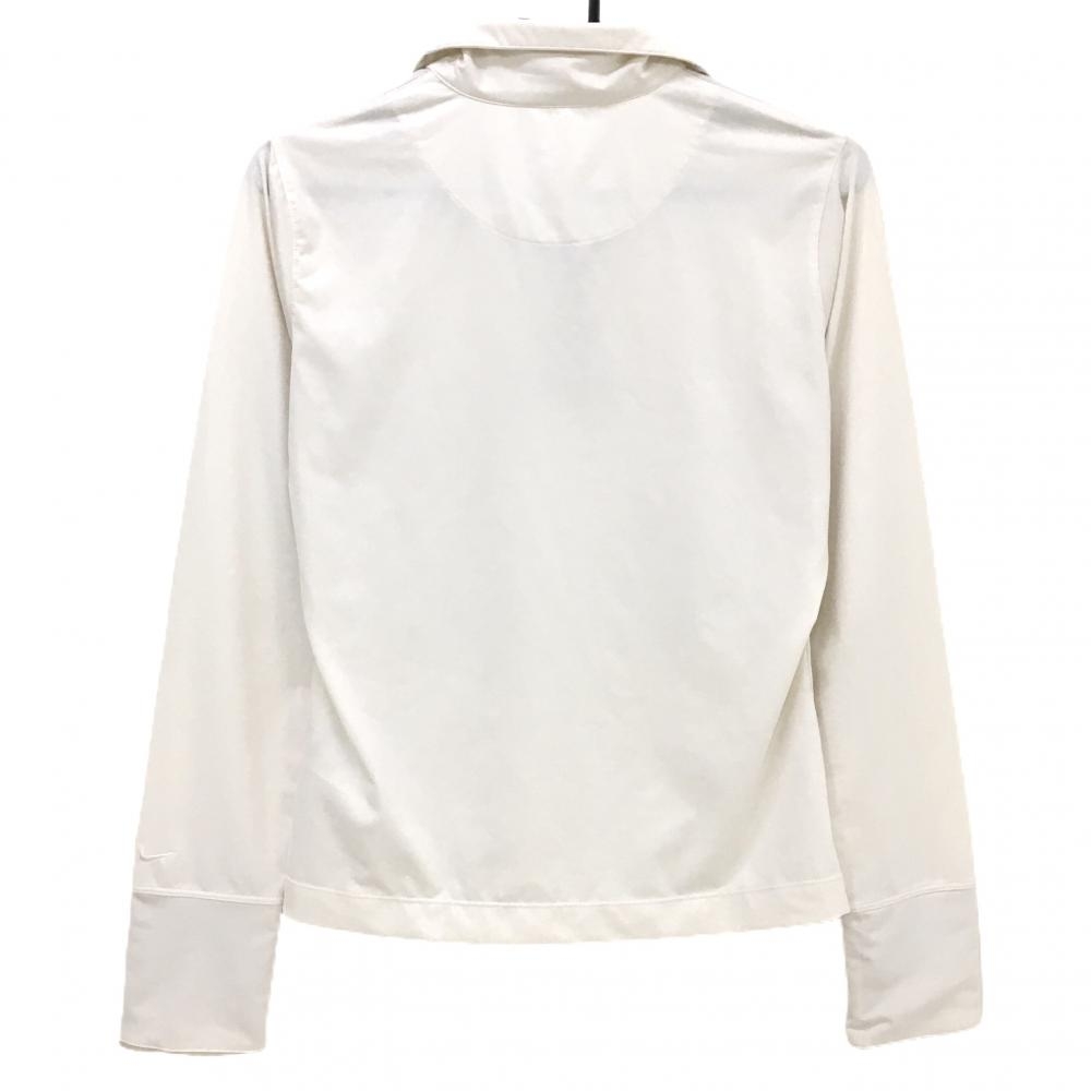 【美品】ナイキゴルフ 長袖スキッパーシャツ アイボリー×ベージュ 袖ロゴ刺しゅう レディース ゴルフウェア NIKE