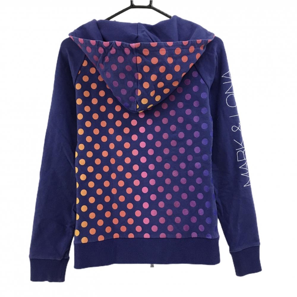 マークアンドロナ ジップパーカー パープル×オレンジ×ピンク 身頃・フードドット柄 ジャケット レディース M ゴルフウェア MARK&LONA
