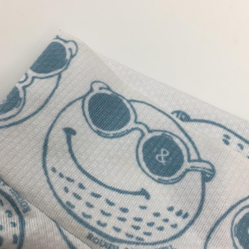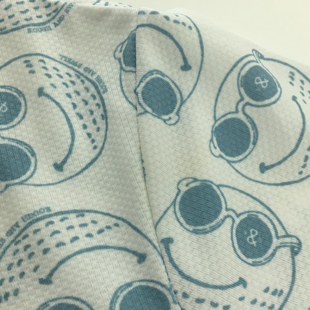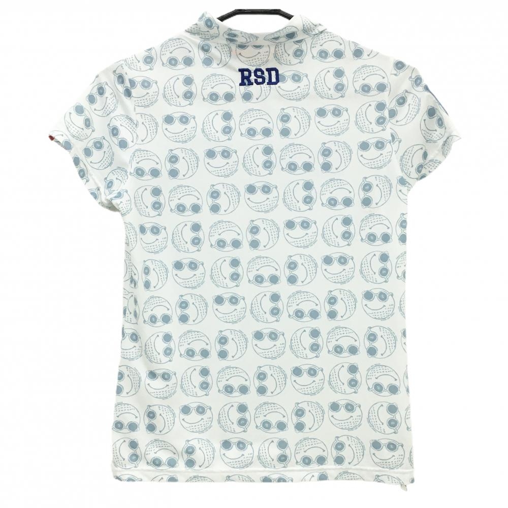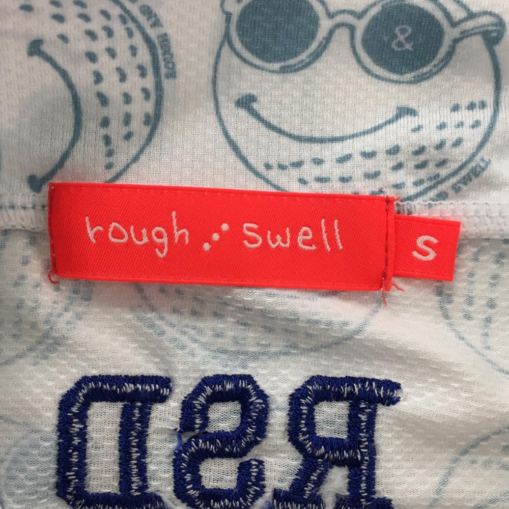 ラフアンドスウェル 半袖ハイネックシャツ 白×スモーキーブルー ゴルフボール総柄 フロントロゴ レディース S ゴルフウェア rough&swell