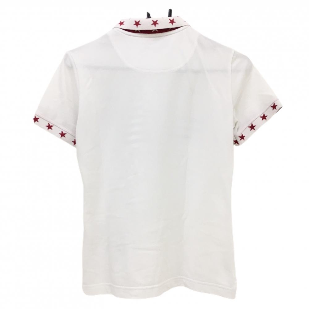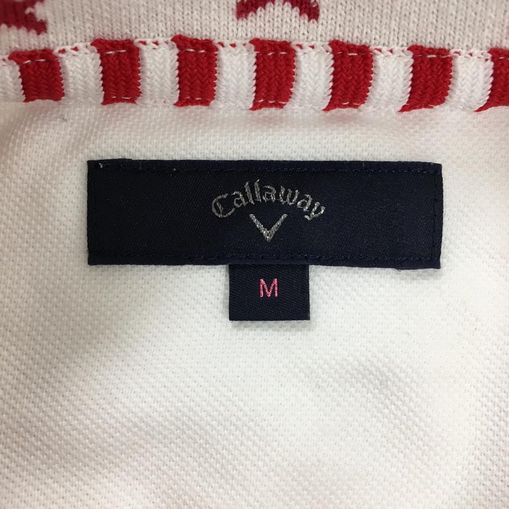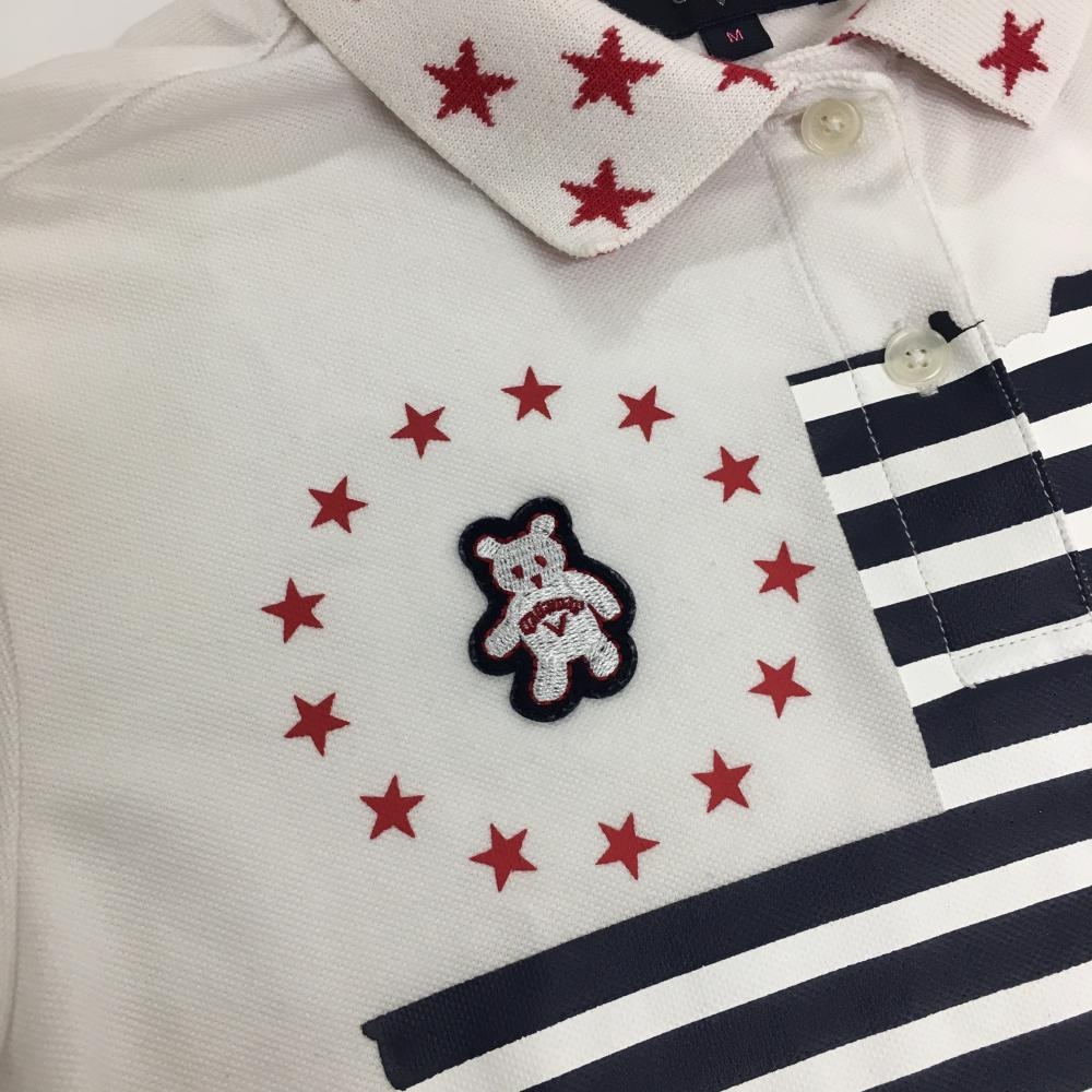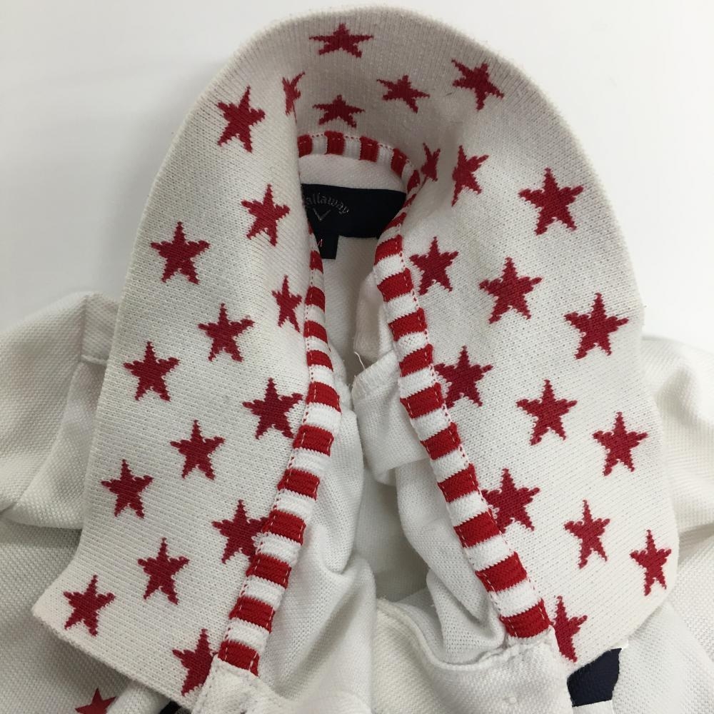 キャロウェイ 半袖ポロシャツ 白×ネイビー×レッド 一部星柄×ボーダー ベアワッペン レディース M ゴルフウェア Callaway
