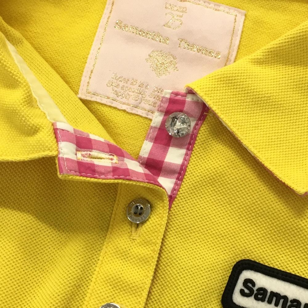 【美品】サマンサタバサUNDER25 半袖ポロシャツ イエロー 襟裏ギンガムチェック バックロゴ レディース PRO ゴルフウェア Samantha Thavasa