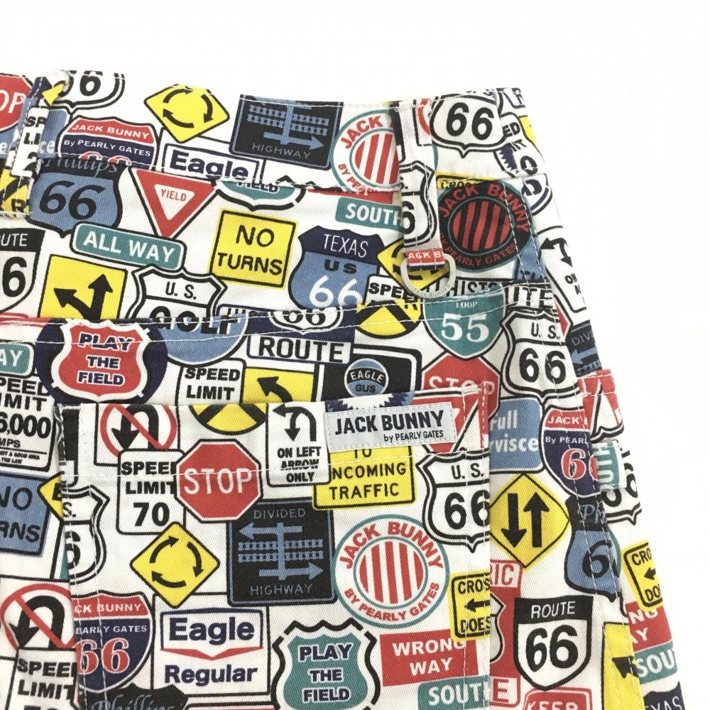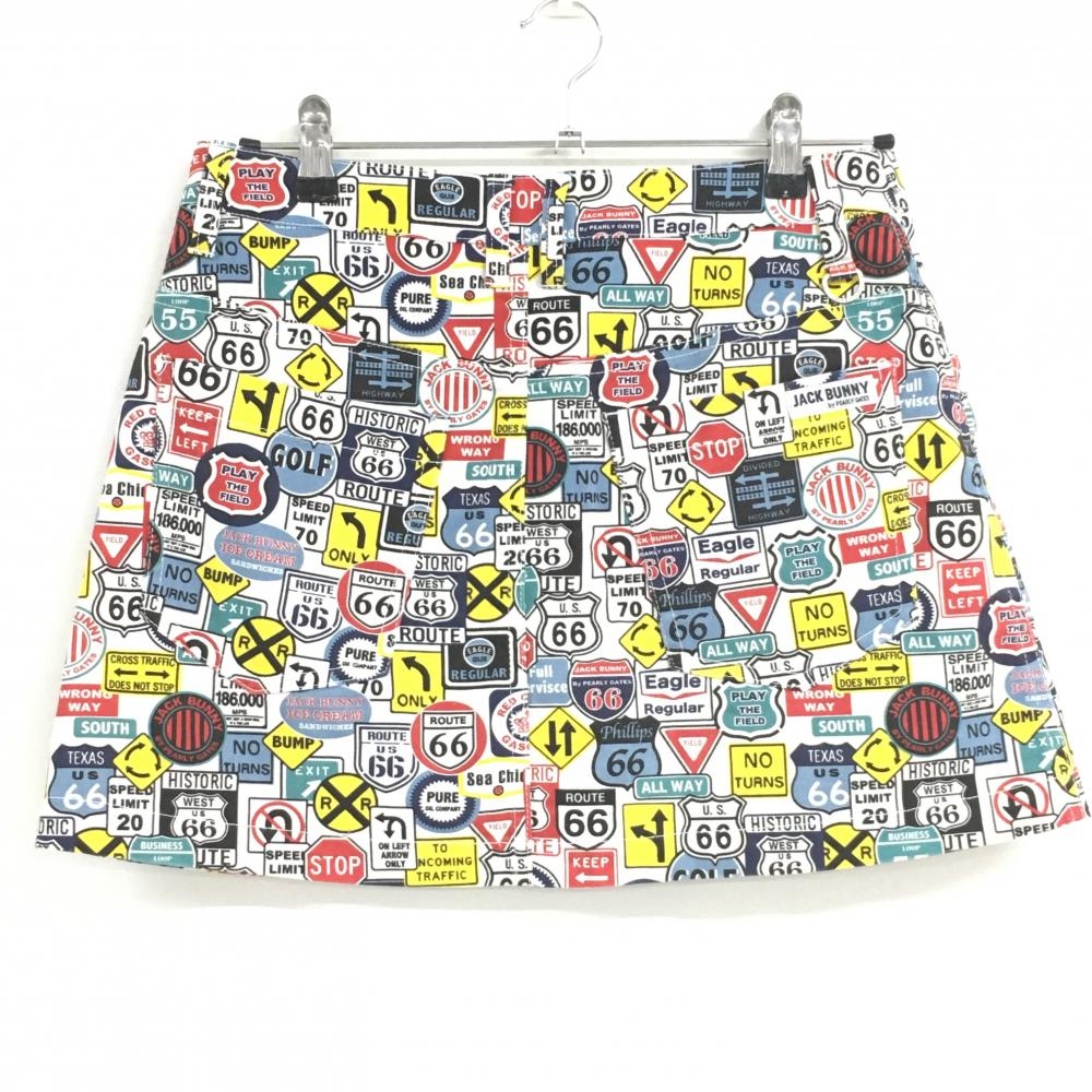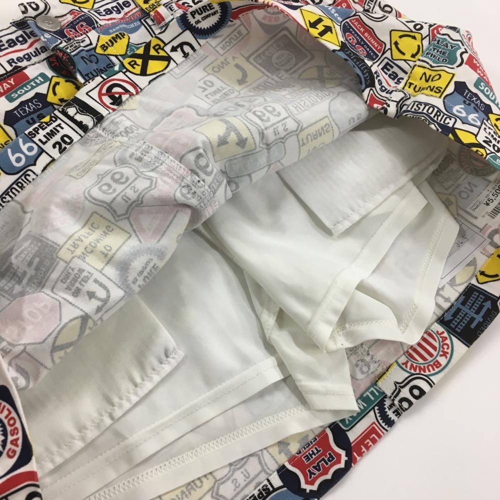 【美品】ジャックバニー スカート 白×マルチカラー 総柄 内側インナーパンツ ストレッチ レディース 2(L) ゴルフウェア Jack Bunny
