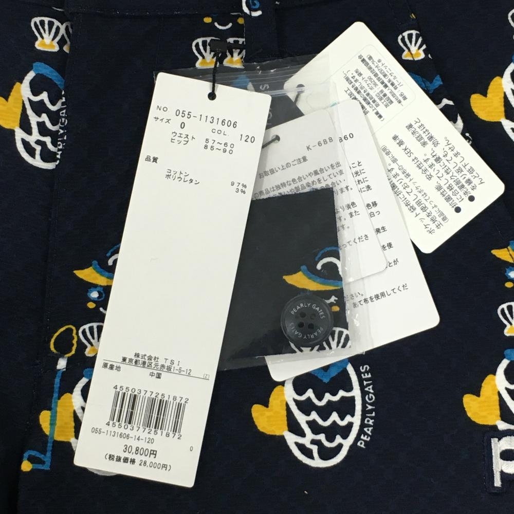 【新品】パーリーゲイツ パンツ ネイビー×白 マーメイド柄 ストレッチ レディース 0(S) ゴルフウェア PEARLY GATES