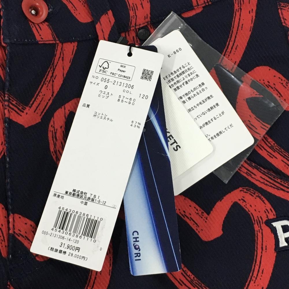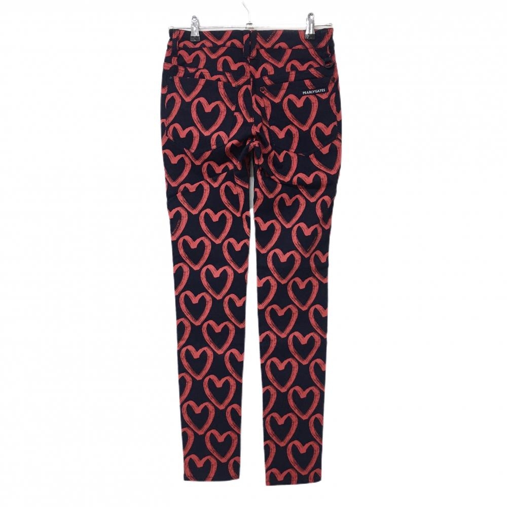 【新品】パーリーゲイツ パンツ ネイビー×レッド ハート柄 ストレッチ レディース 0(S) ゴルフウェア PEARLY GATES