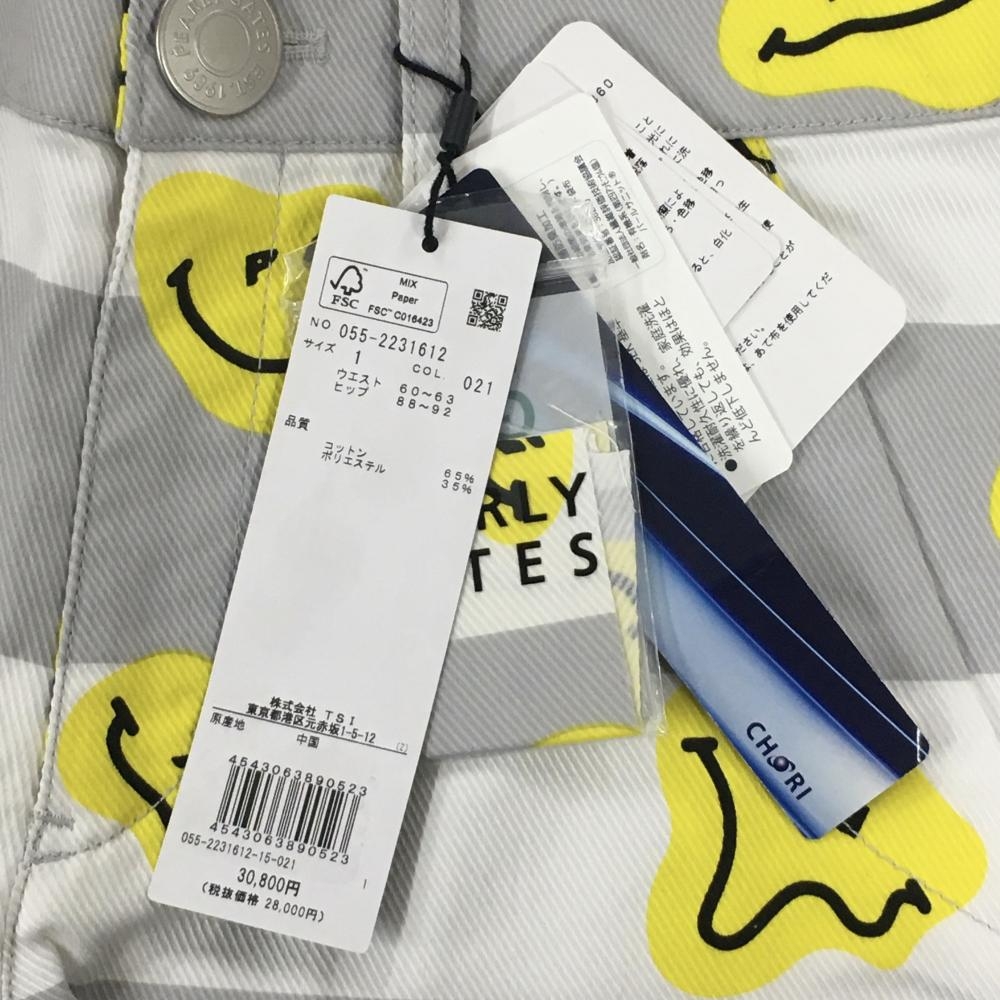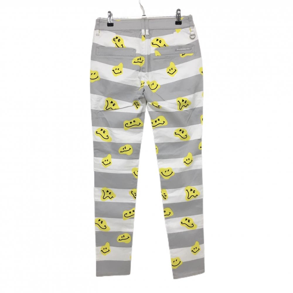 【新品】パーリーゲイツ パンツ グレー×白 ボーダー TOKE NICO ニコちゃん スマイル レディース 1(M) ゴルフウェア PEARLY GATES