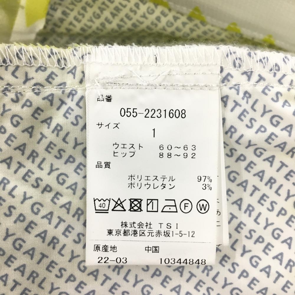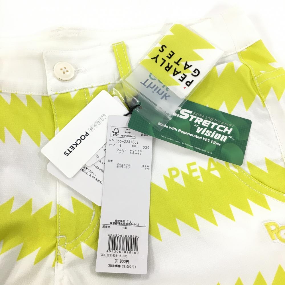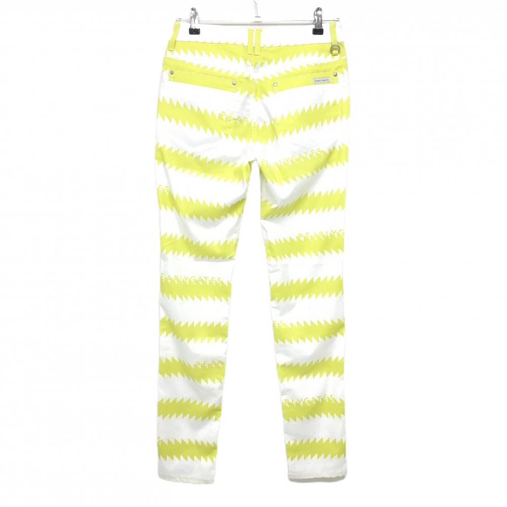 【新品】パーリーゲイツ パンツ 白×イエロー ギザギザボーダー ストレッチ レディース 1(M) ゴルフウェア PEARLY GATES