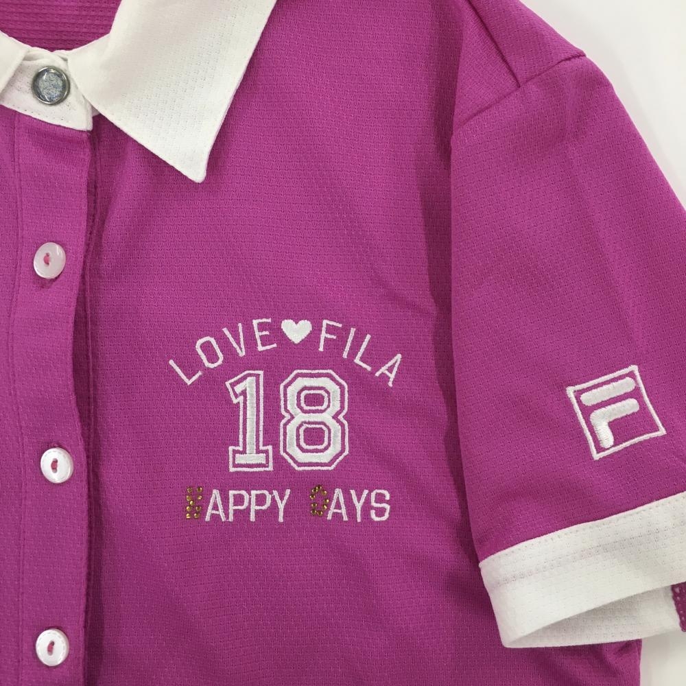 【美品】フィラゴルフ インナー付半袖ポロシャツ ピンク×白 キャミソール レディース M ゴルフウェア FILA GOLF