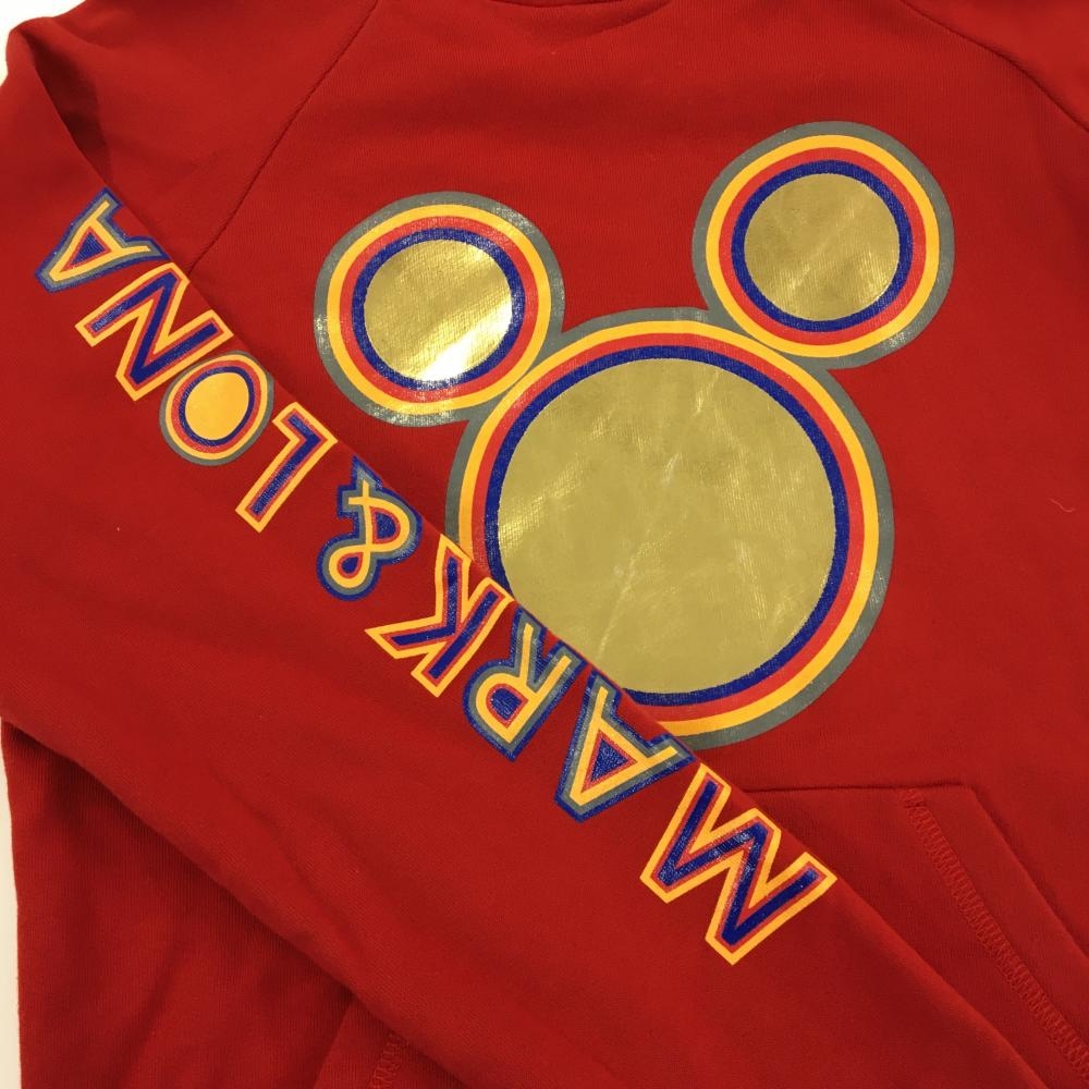 【美品】マークアンドロナ×Disney パーカー レッド×ゴールド ミッキー レディース S ゴルフウェア MARK&LONA