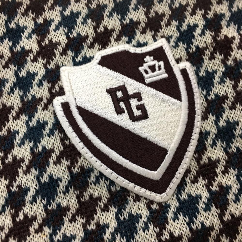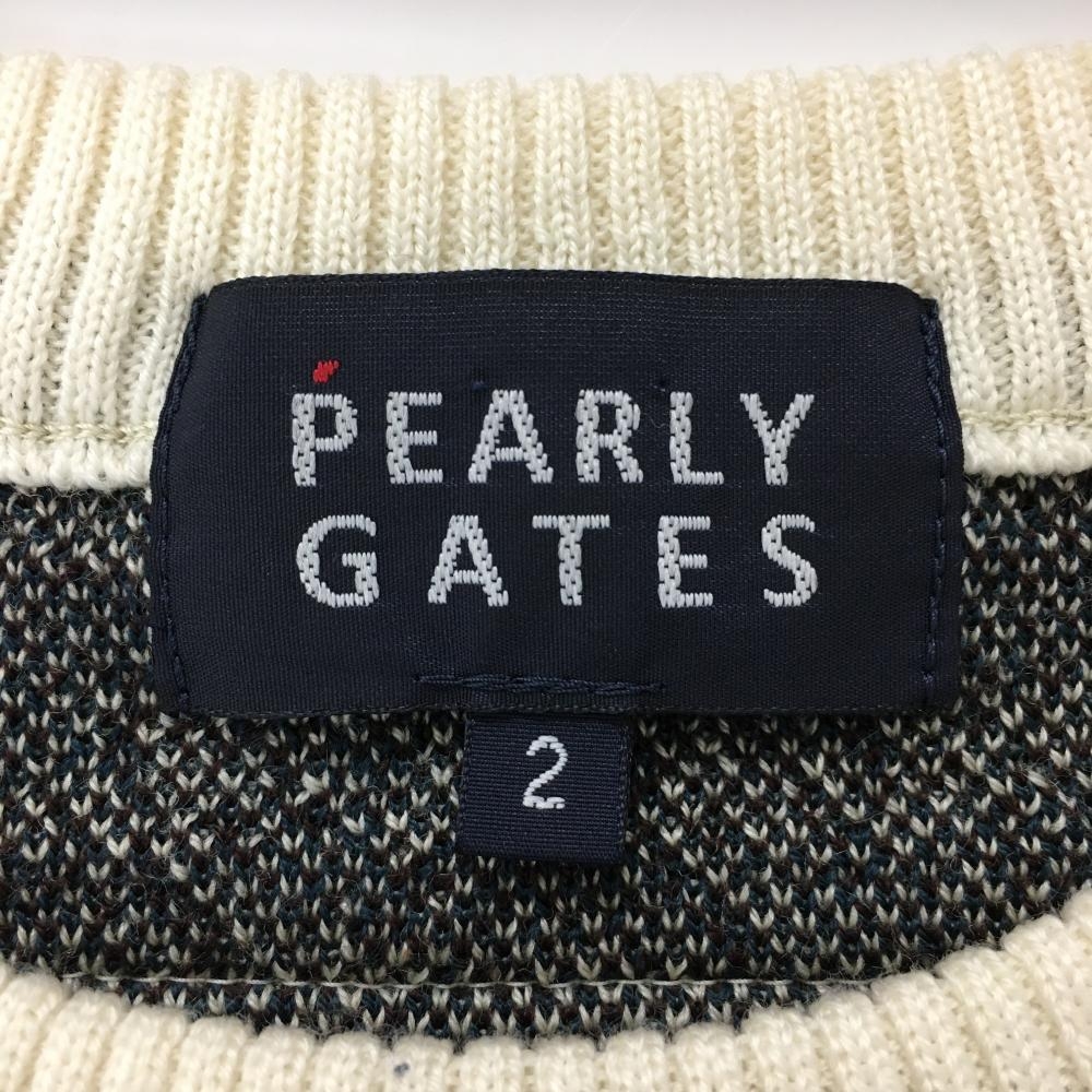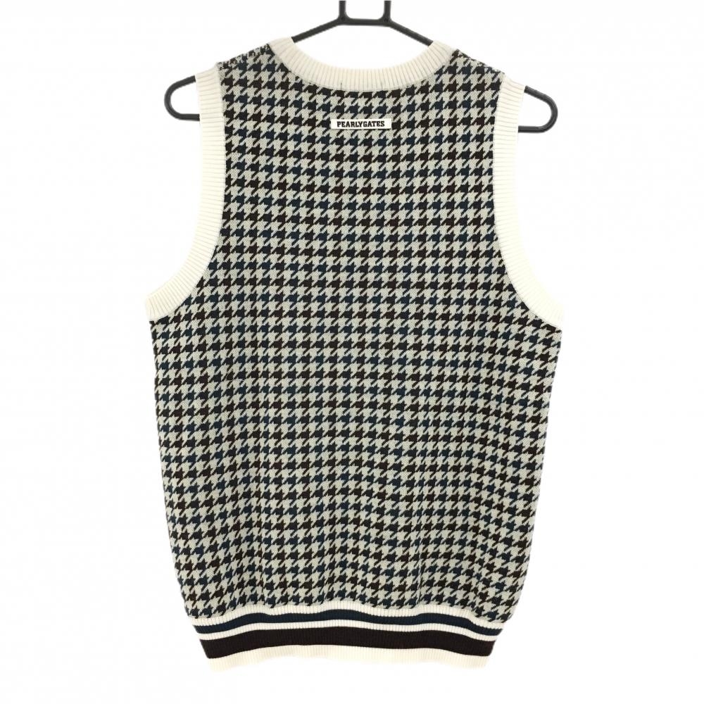 【美品】パーリーゲイツ ニットベスト ブラウン×ダークブルー系×白 千鳥格子 ウール混 レディース 2(L) ゴルフウェア PEARLY GATES