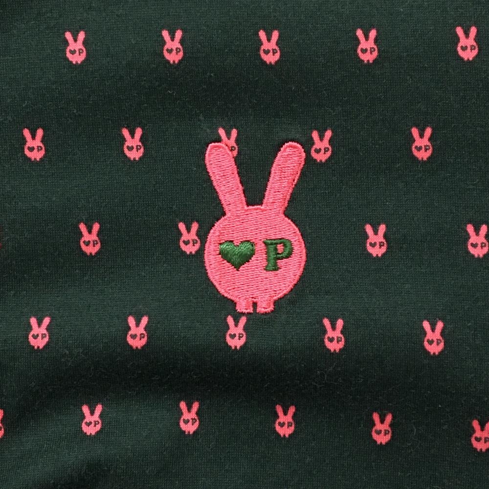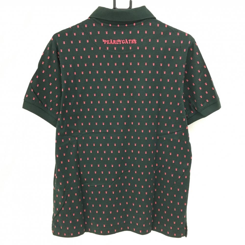 パーリーゲイツ 半袖ポロシャツ グリーン×ピンク スカルラビット総柄 メンズ 4(M) ゴルフウェア PEARLY GATES