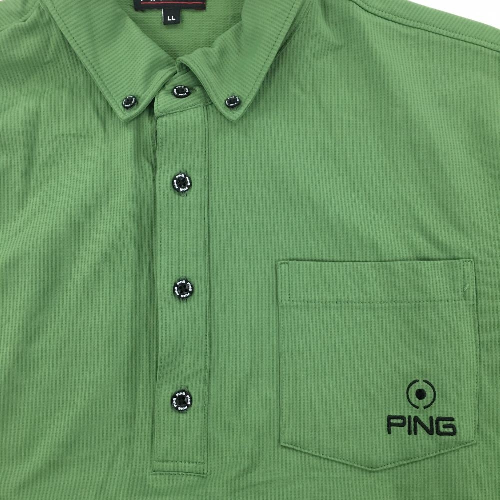 ピン 半袖ポロシャツ グリーン ボタンダウン 胸ポケット メンズ LL ゴルフウェア 2025年モデル PING
