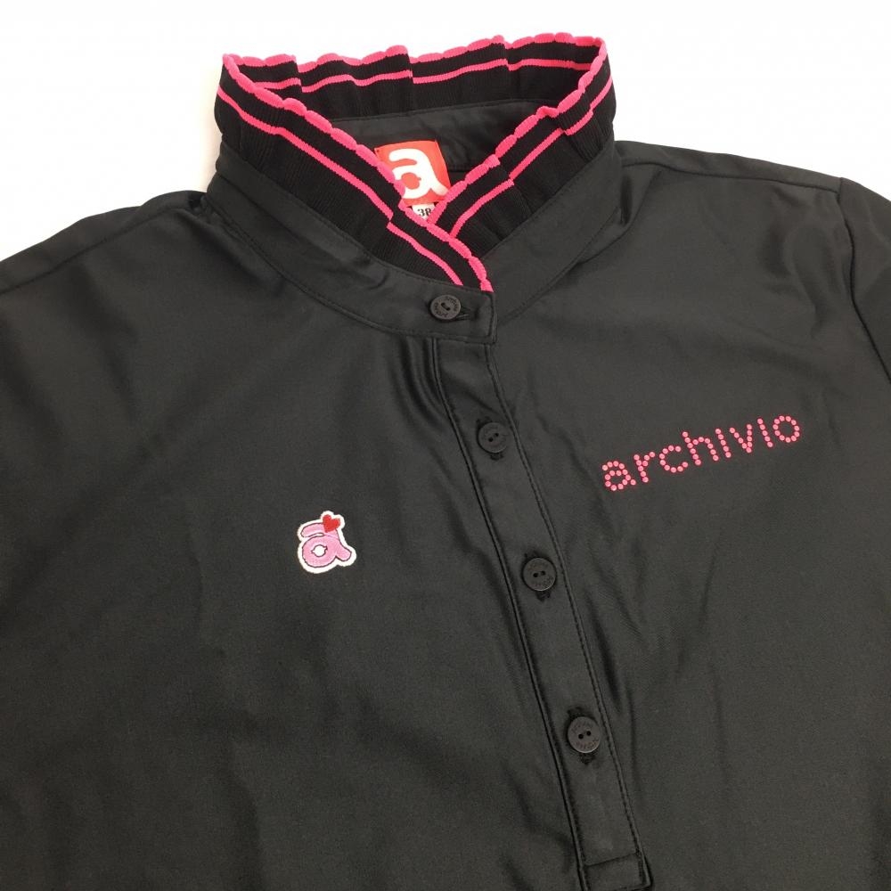 【超美品】アルチビオ 半袖ポロシャツ 黒×ピンク スタンドカラー レディース 38(M) ゴルフウェア archivio