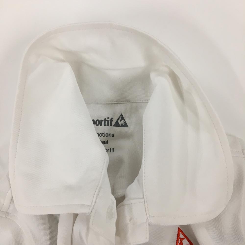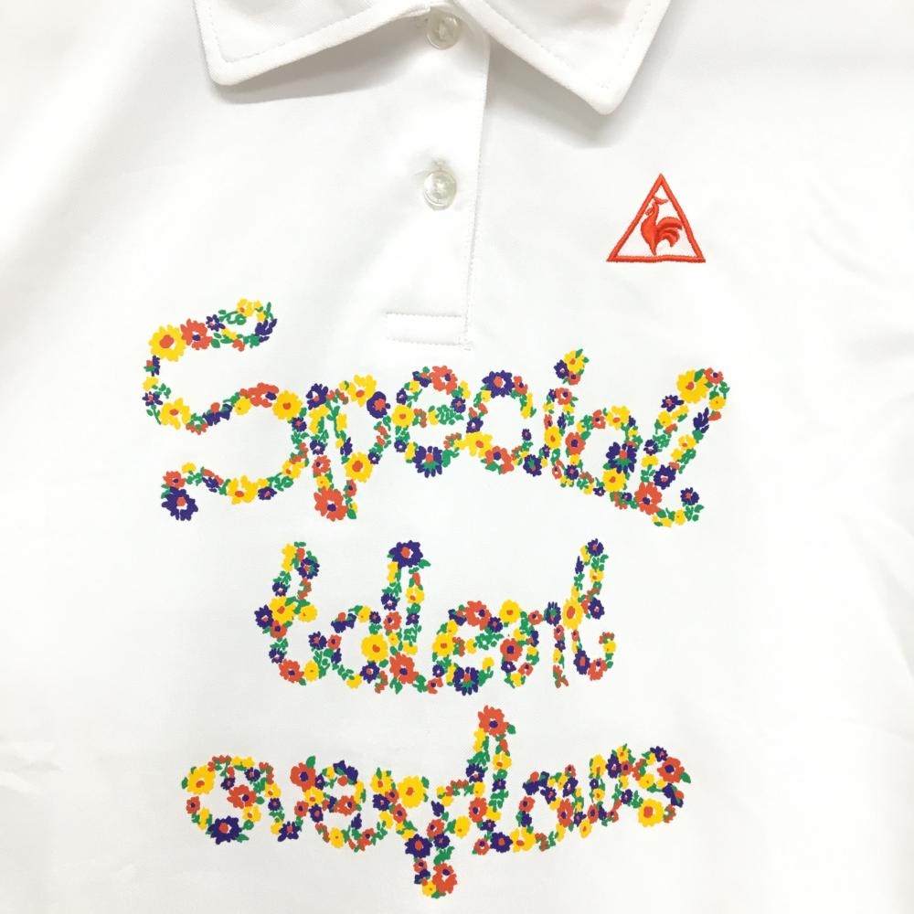 【美品】ルコックゴルフ 半袖ポロシャツ 白×レッド 英字花 レディース L ゴルフウェア le coq sportif