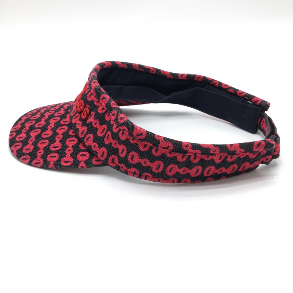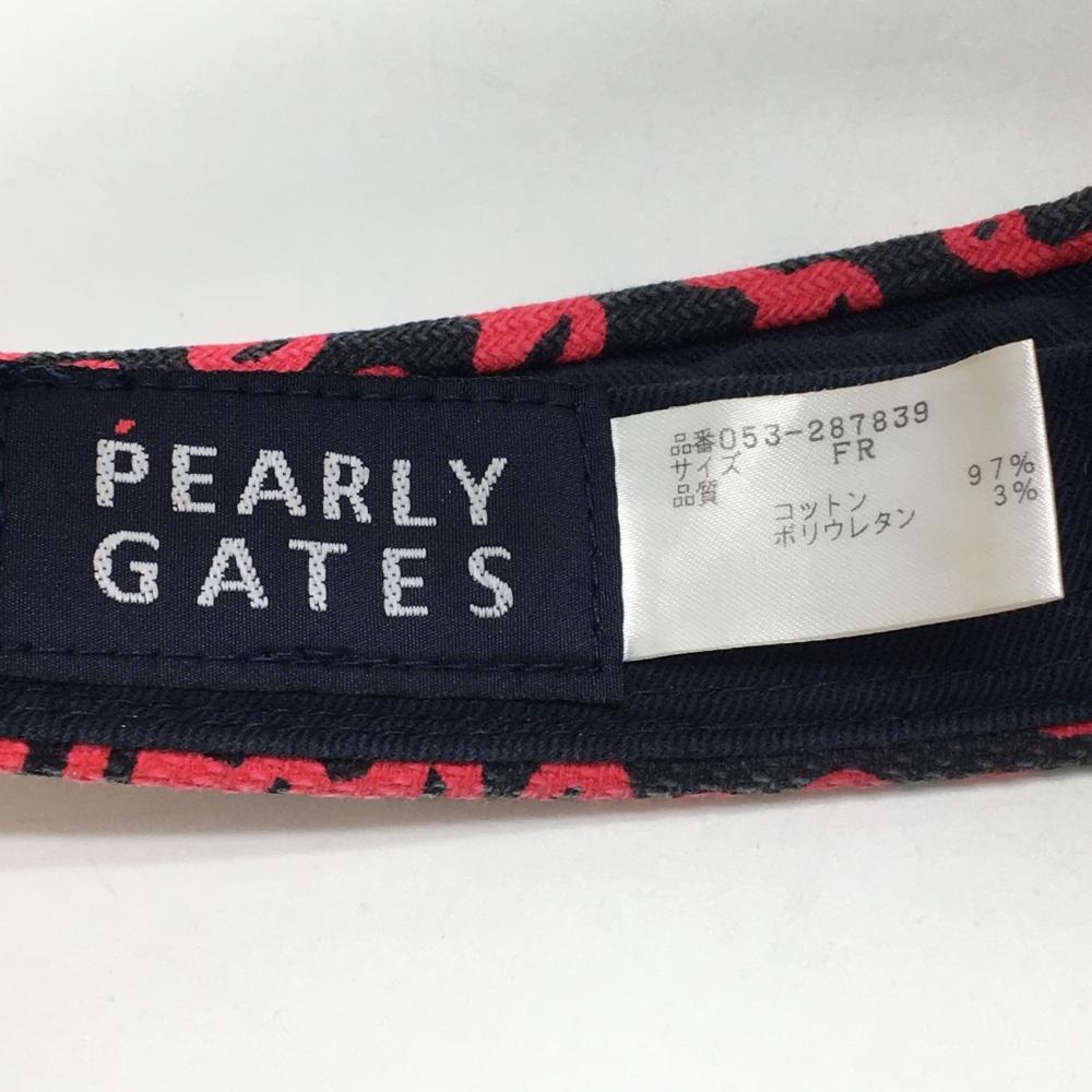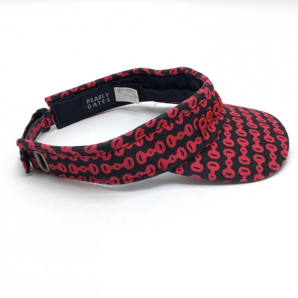 パーリーゲイツ サンバイザー ネイビー×レッド 総柄 立体ロゴ刺しゅう FR ゴルフウェア PEARLY GATES