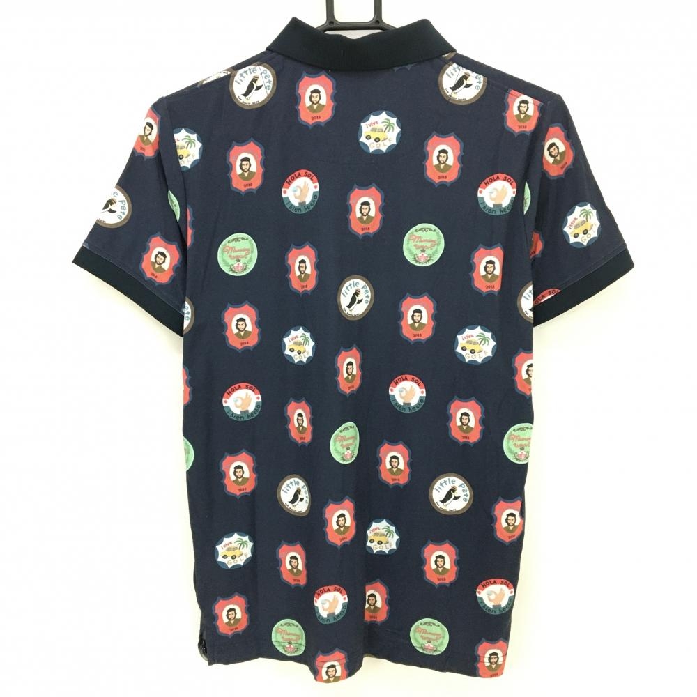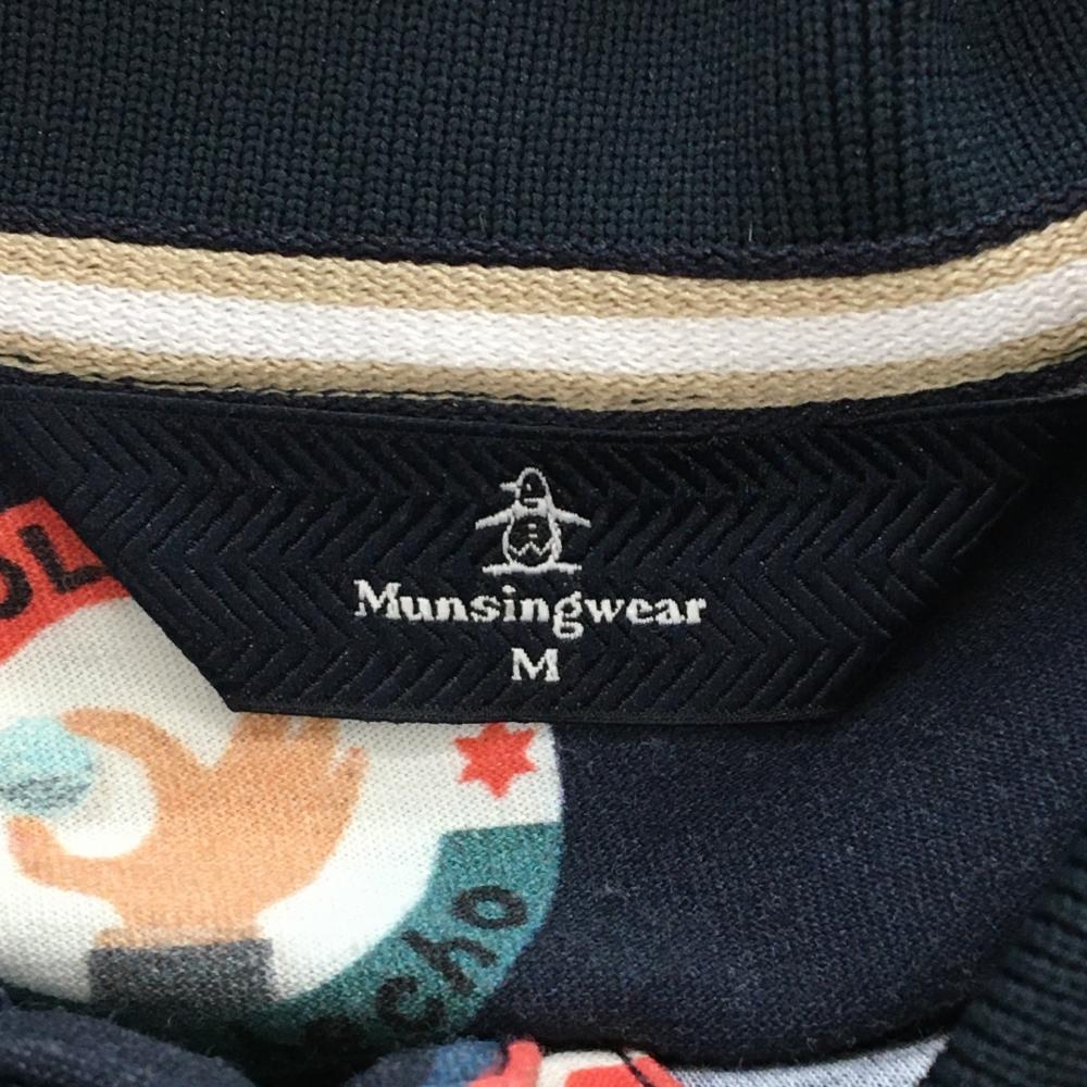 マンシングウェア 半袖ポロシャツ ダークネイビー×ピンク系×グリーン 総柄 メンズ M ゴルフウェア Munsingwear