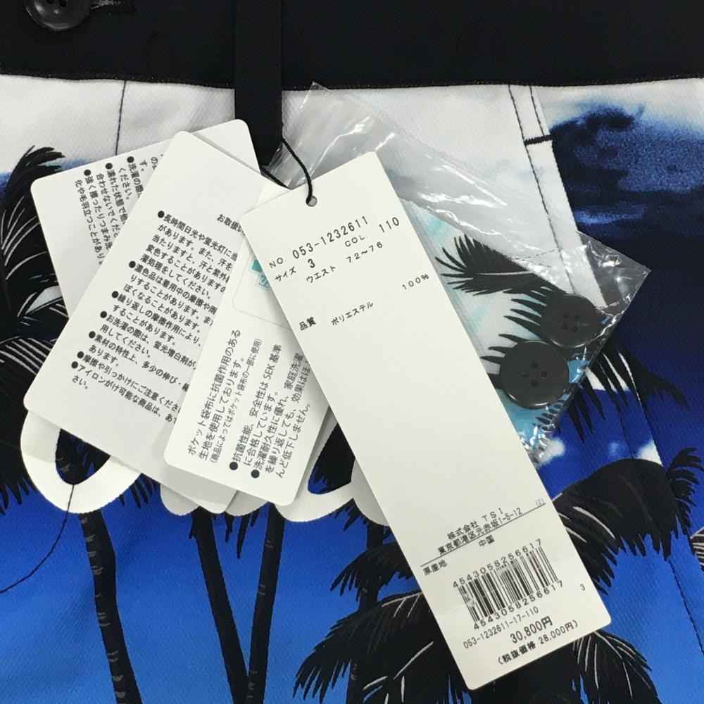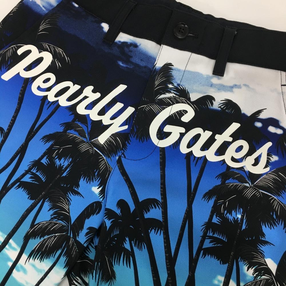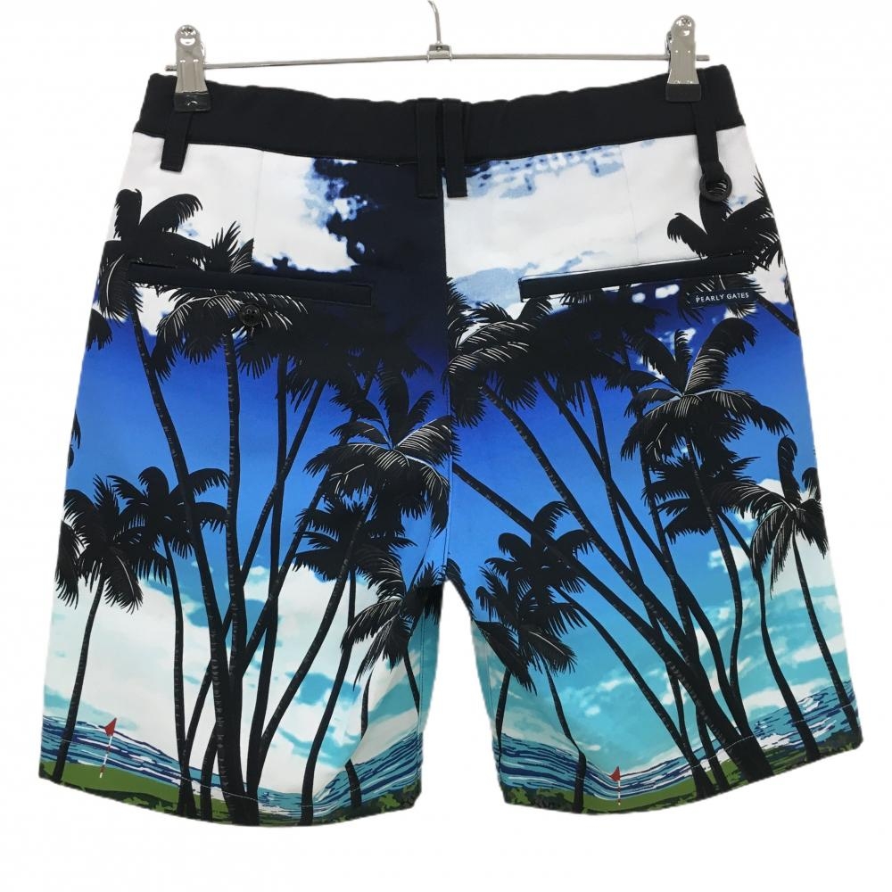 【新品】パーリーゲイツ ハーフパンツ ライトブルー×黒 ヤシの木 ロゴ メンズ 3(S) ゴルフウェア PEARLY GATES
