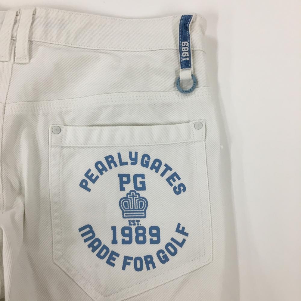 パーリーゲイツ パンツ 白 ロゴライトブルー ティー装着可 メンズ 3(S) ゴルフウェア PEARLY GATES