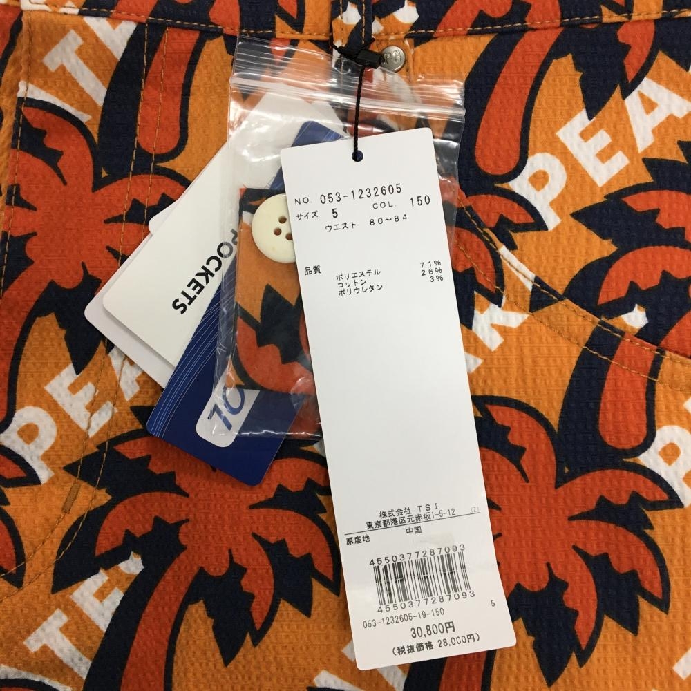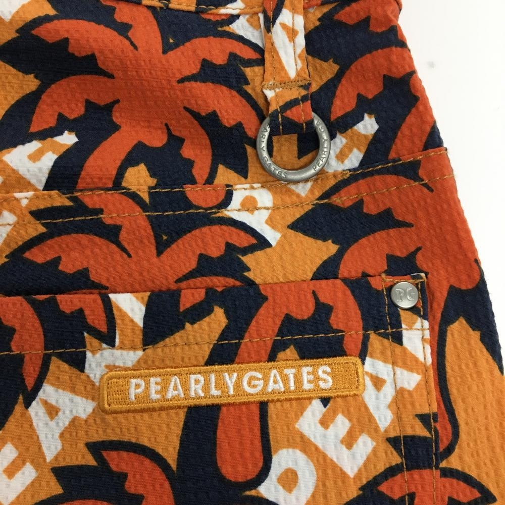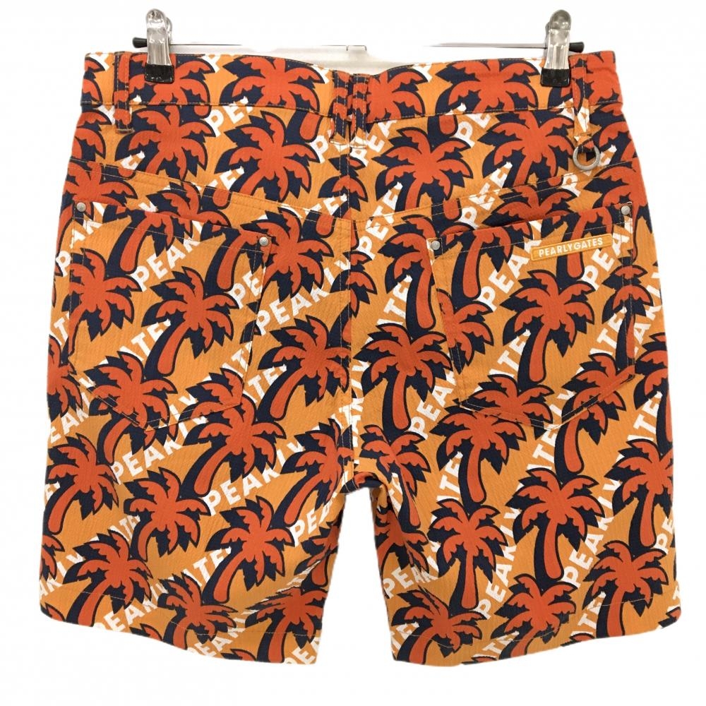 【新品】パーリーゲイツ ハーフパンツ オレンジ×ネイビー ヤシの木柄 サッカー生地 プラスクール メンズ 5(L) ゴルフウェア PEARLY GATES