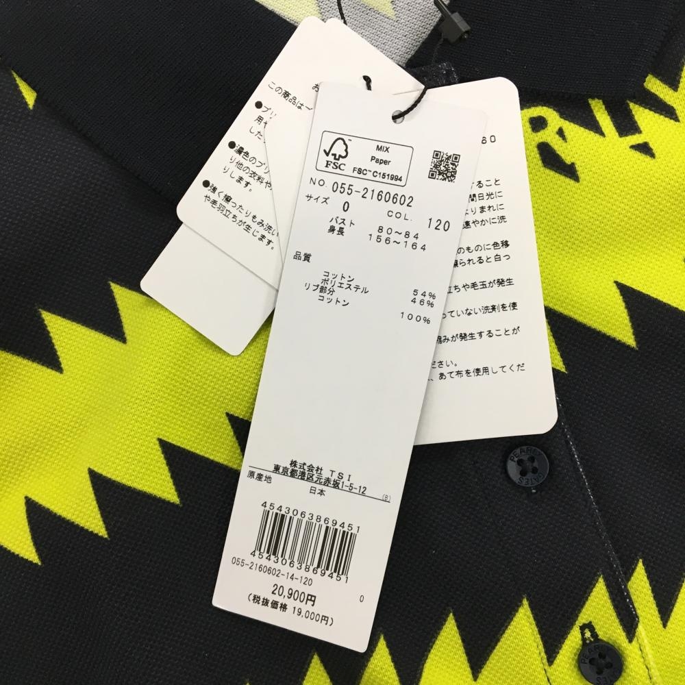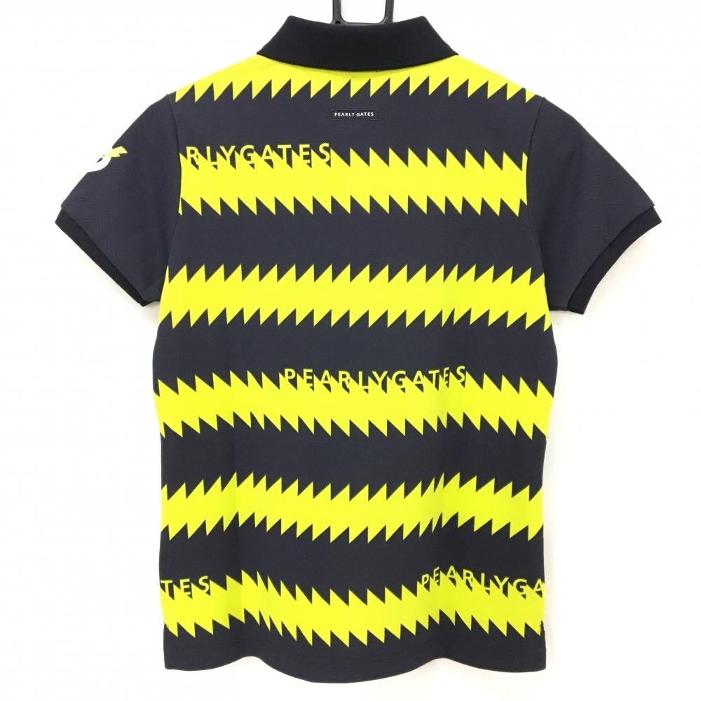【新品】パーリーゲイツ 半袖ポロシャツ 黒×イエロー ギザギザボーダー 日本製 レディース 0(S) ゴルフウェア PEARLY GATES