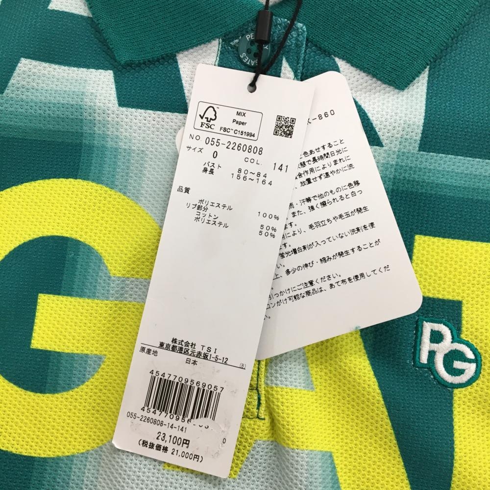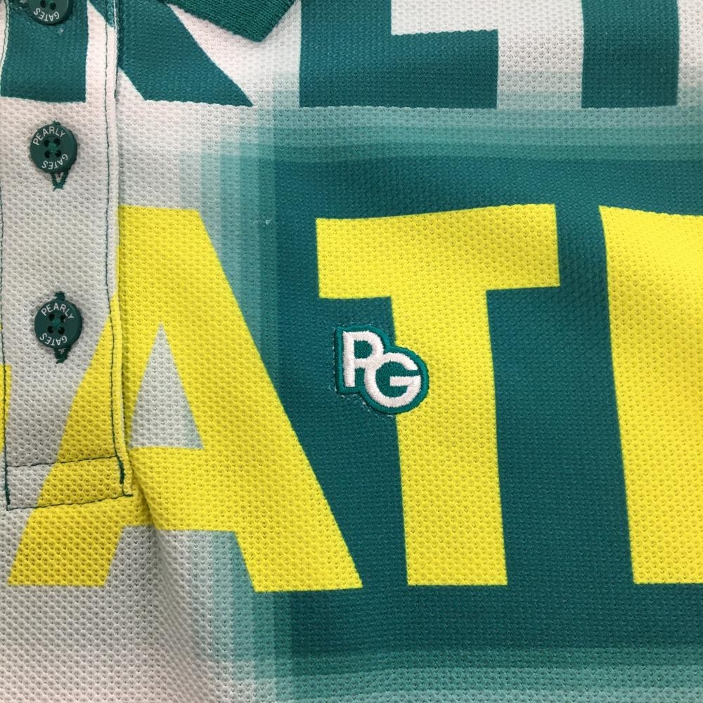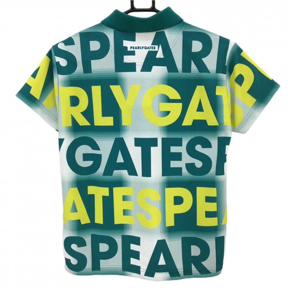 【新品】パーリーゲイツ 半袖ポロシャツ グリーン×イエロー ロゴ総柄 日本製 レディース 0(S) ゴルフウェア PEARLY GATES