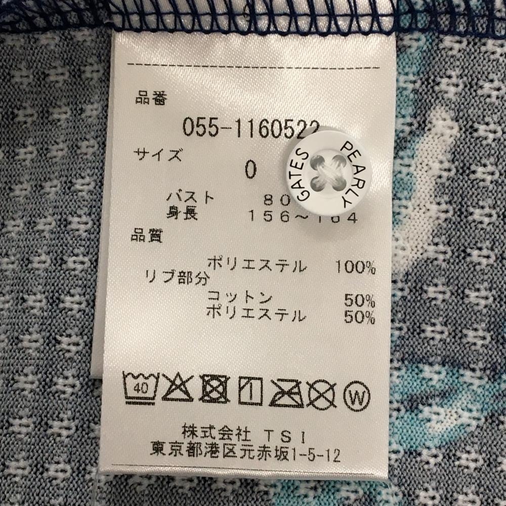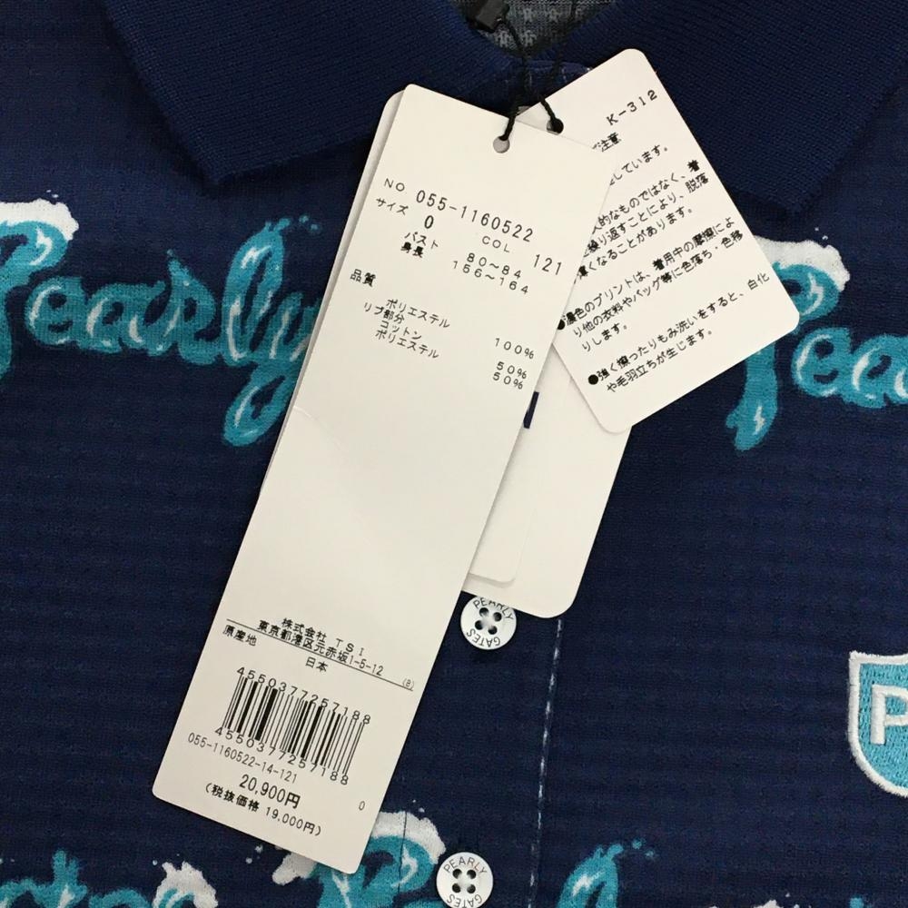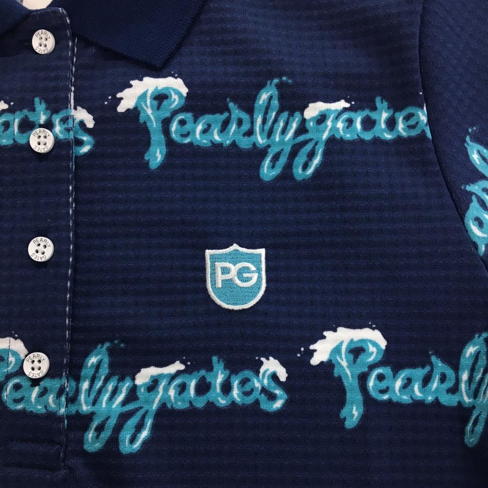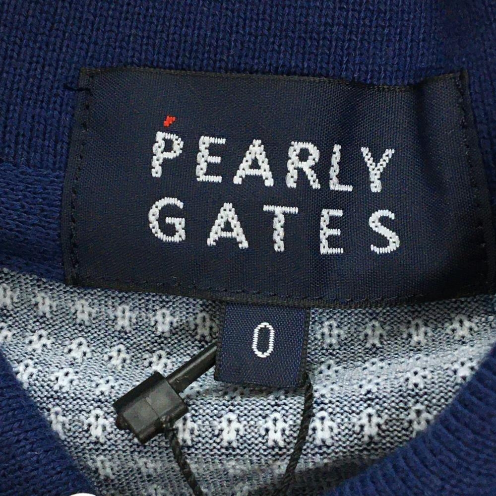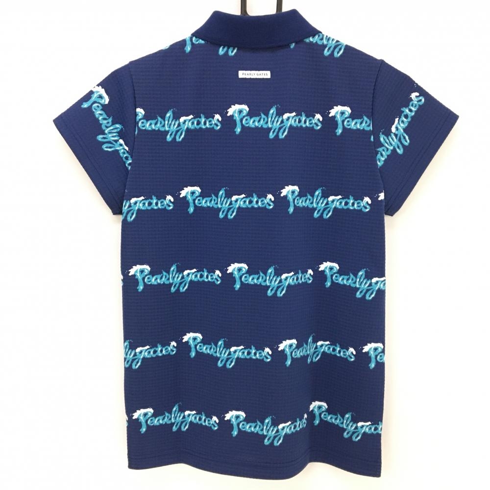 【新品】パーリーゲイツ 半袖ポロシャツ ネイビー×ライトブルー ロゴボーダー風 日本製 レディース 0(S) ゴルフウェア PEARLY GATES
