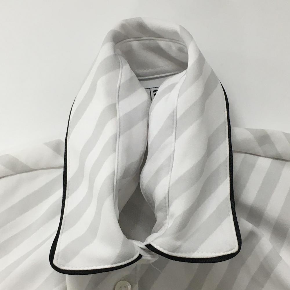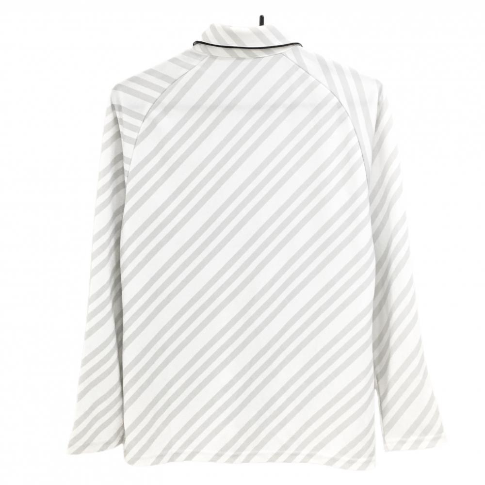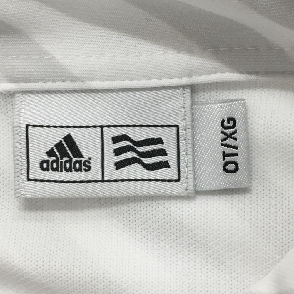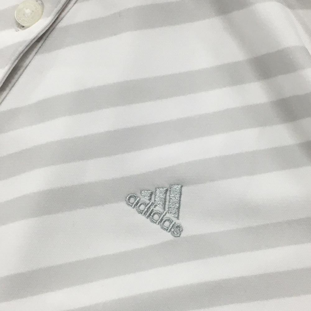 【美品】アディダス 長袖ポロシャツ 白×ライトグレー 斜めボーダー メンズ OT/XG ゴルフウェア adidas