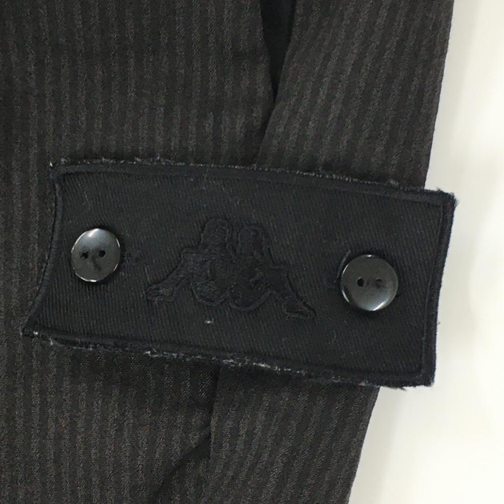 【美品】カッパ パンツ 黒 ストライプ サイドウエストゴム&調節紐 メンズ M ゴルフウェア Kappa