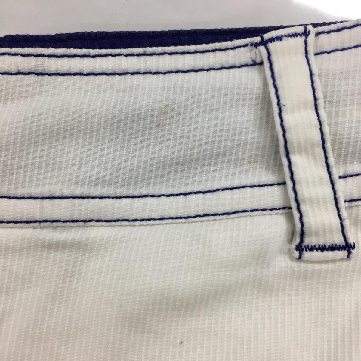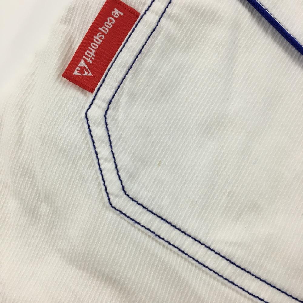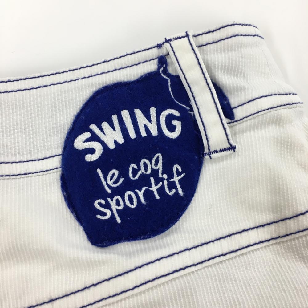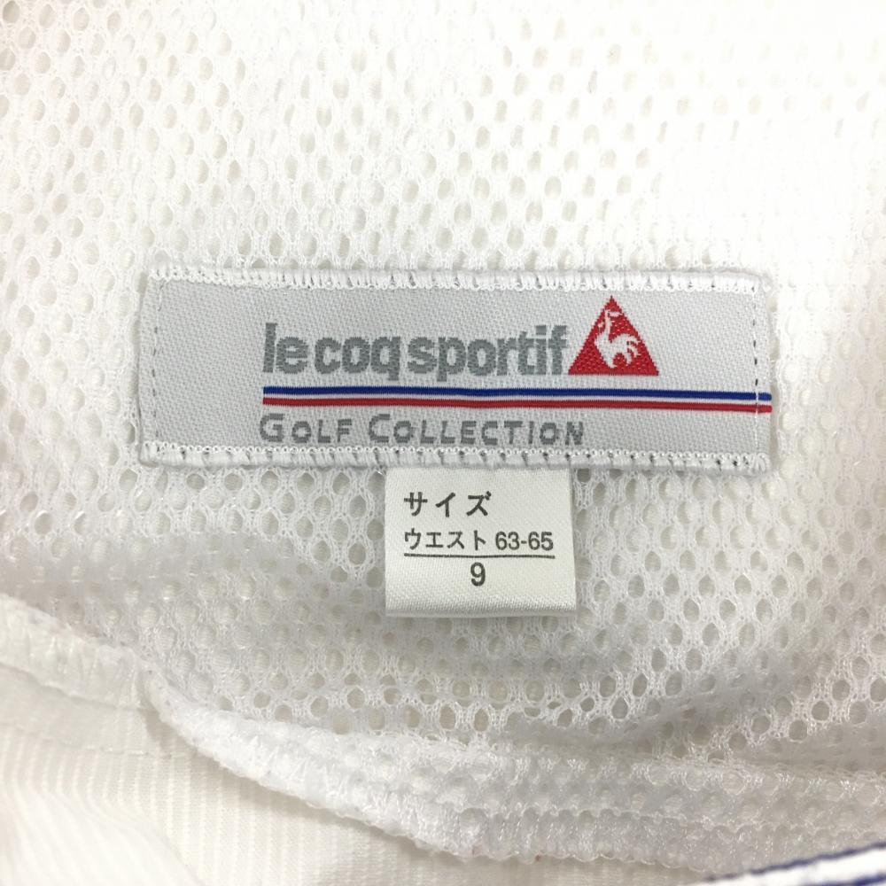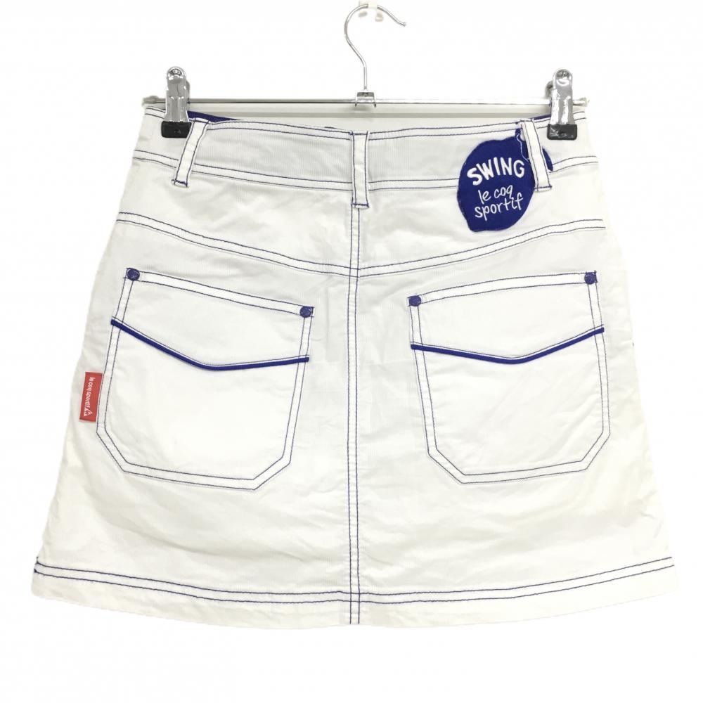 【美品】ルコックゴルフ スカート 白 ステッチブルー ストライプ地模様 レディース 9 ゴルフウェア le coq sportif