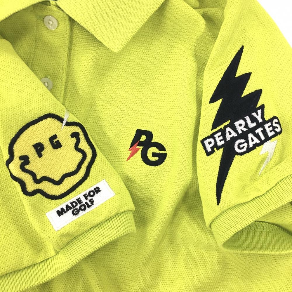 【新品】パーリーゲイツ 半袖ポロシャツ イエロー×黒 稲妻 ニコちゃん スマイル レディース 0(S) ゴルフウェア PEARLY GATES