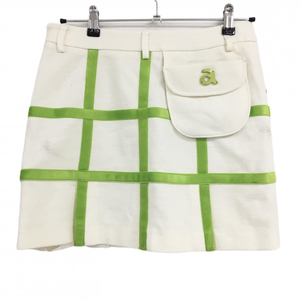 アルチビオ スカート 白×ライトグリーン 格子 ウール混 レディース 38(M) ゴルフウェア archivio