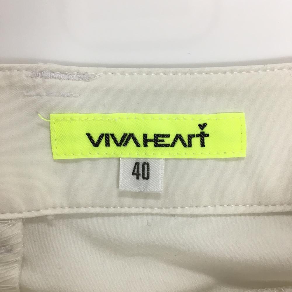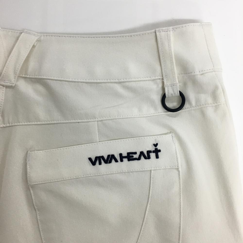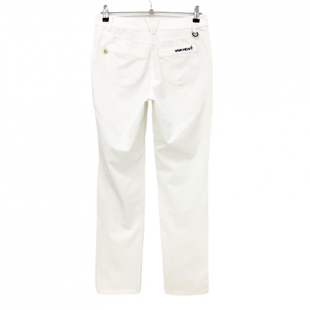 【美品】ビバハート パンツ 白 無地 ロゴネイビー レディース 40(M) ゴルフウェア VIVA HEART