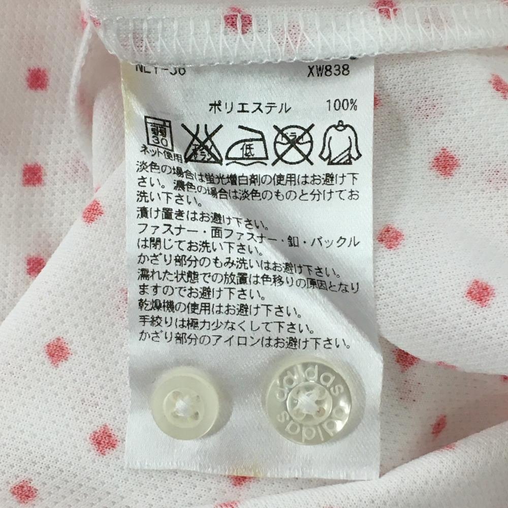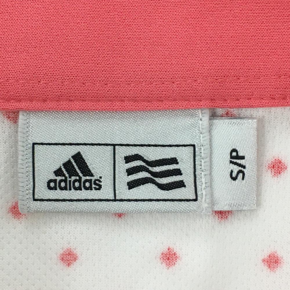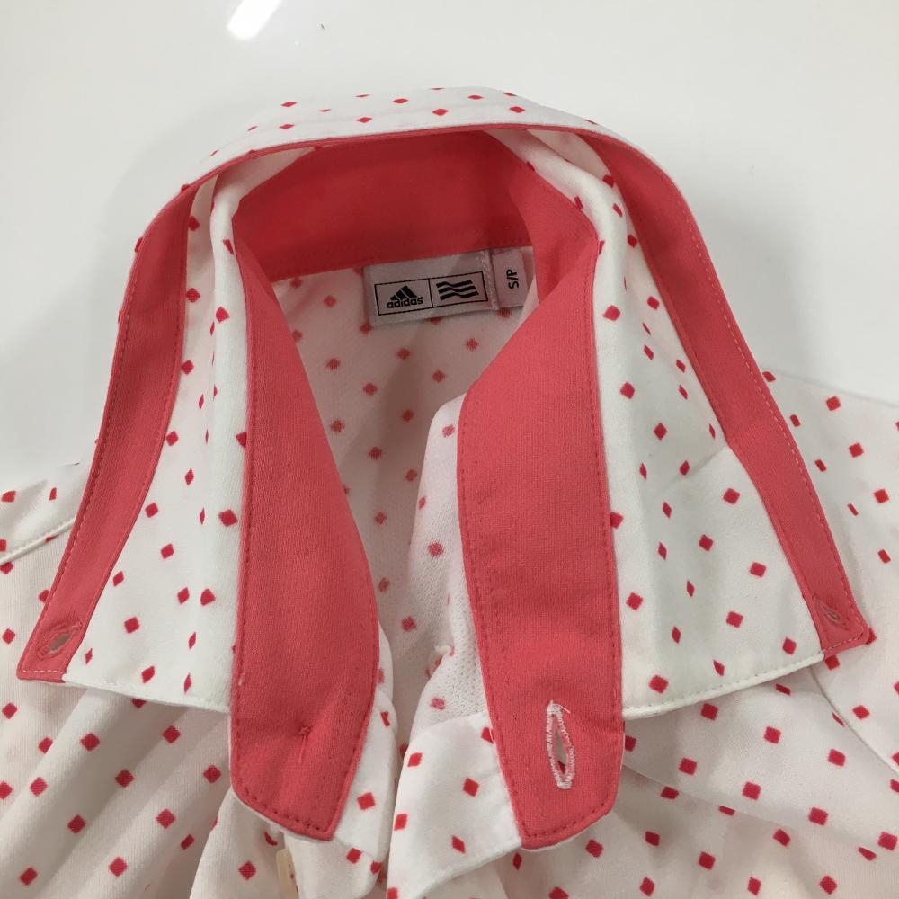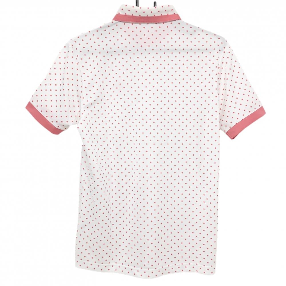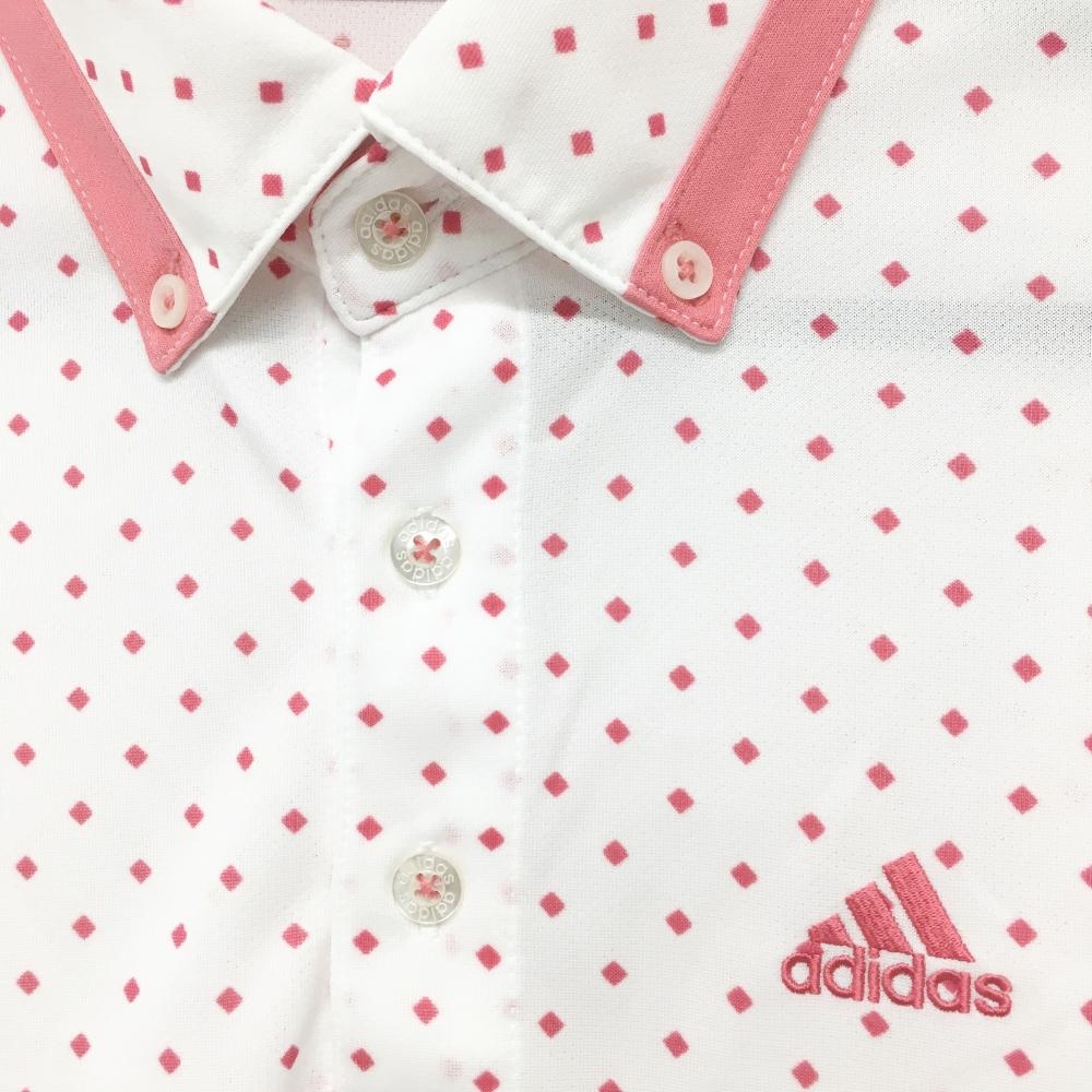【美品】アディダス 半袖ポロシャツ 白×ピンク スクエア総柄 ボタンダウン メンズ S/P ゴルフウェア adidas