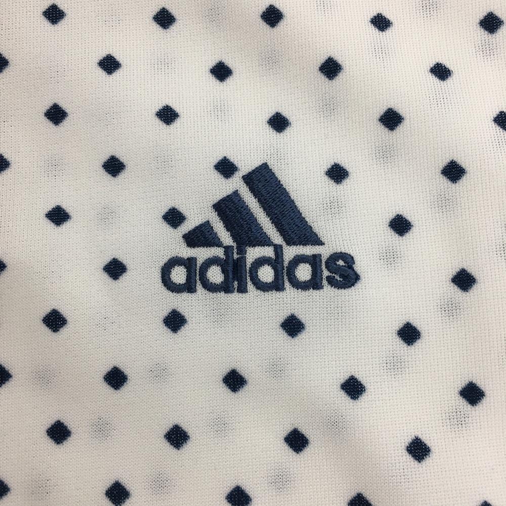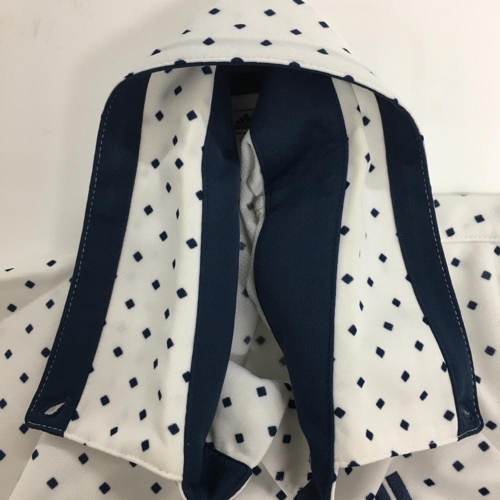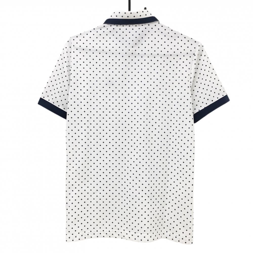 アディダス 半袖ポロシャツ 白×ネイビー スクエア総柄 ボタンダウン メンズ S/P ゴルフウェア adidas