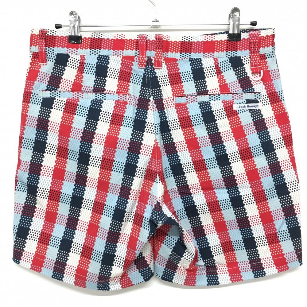 【超美品】ジャックバニー ハーフパンツ レッド×ネイビー ブロックチェック ストレッチ メンズ 5(L) ゴルフウェア Jack Bunny