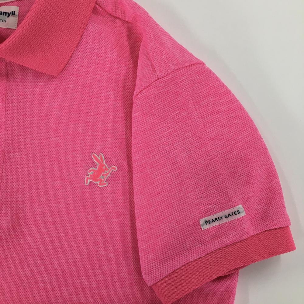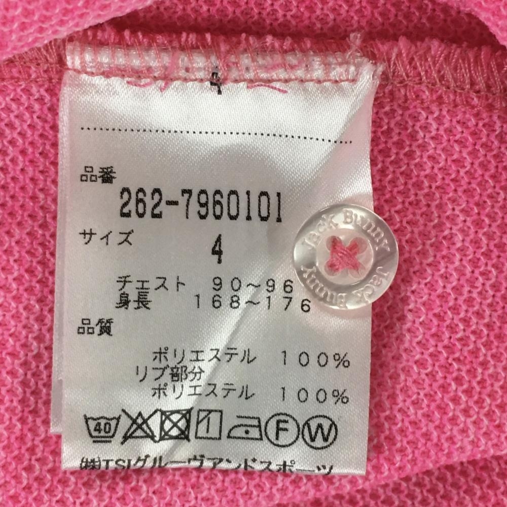 【超美品】ジャックバニー 半袖ポロシャツ 蛍光ピンク ラビット刺しゅう メンズ 4(M) ゴルフウェア Jack Bunny