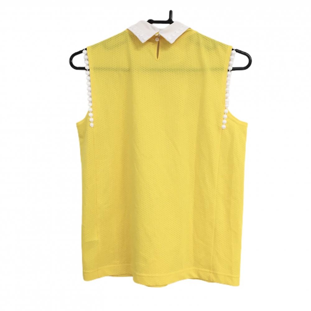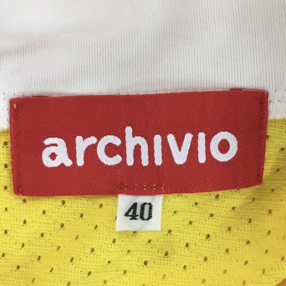 【美品】アルチビオ ノースリーブポロシャツ イエロー×白 メッシュ調 レディース 40(L) ゴルフウェア archivio